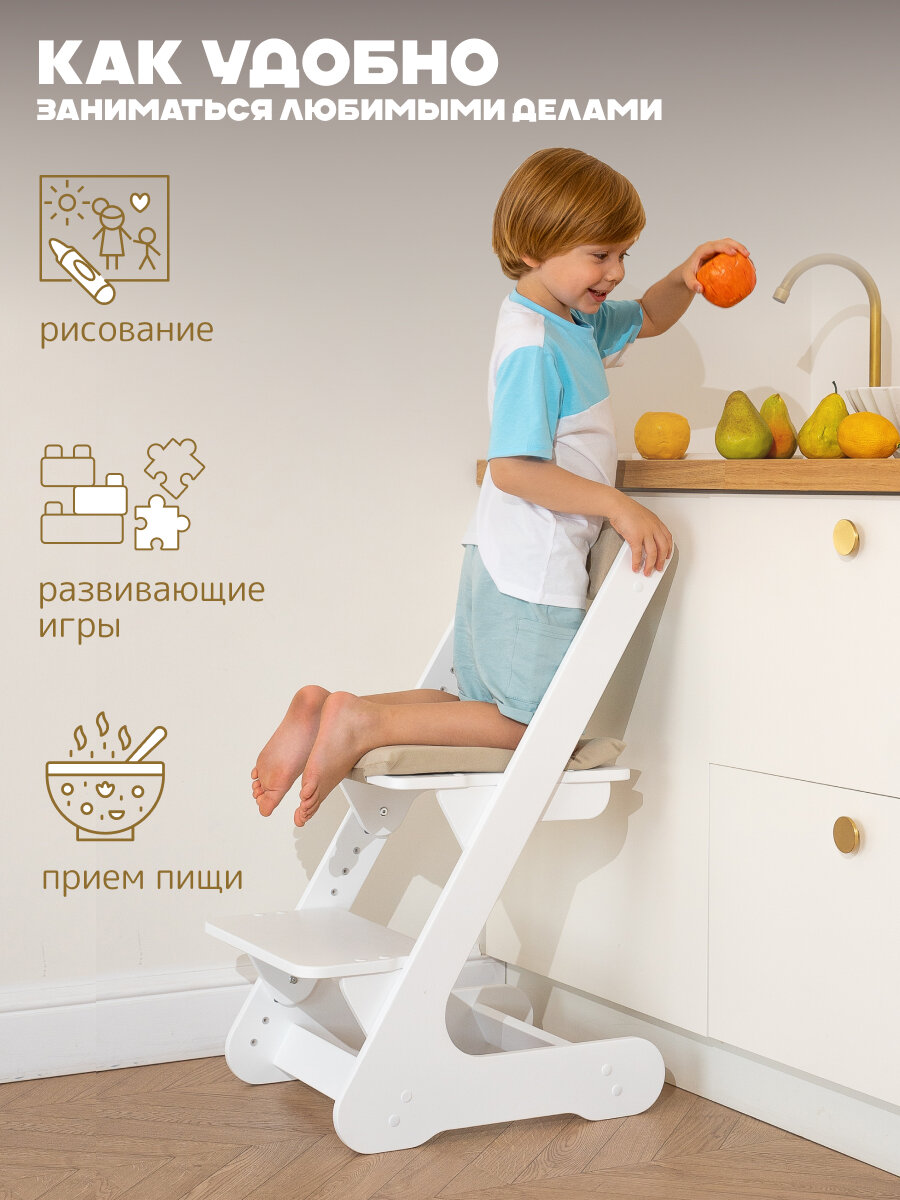 СохранитьРастущий стул детский растульчик деревянный белый с подушками интересное: