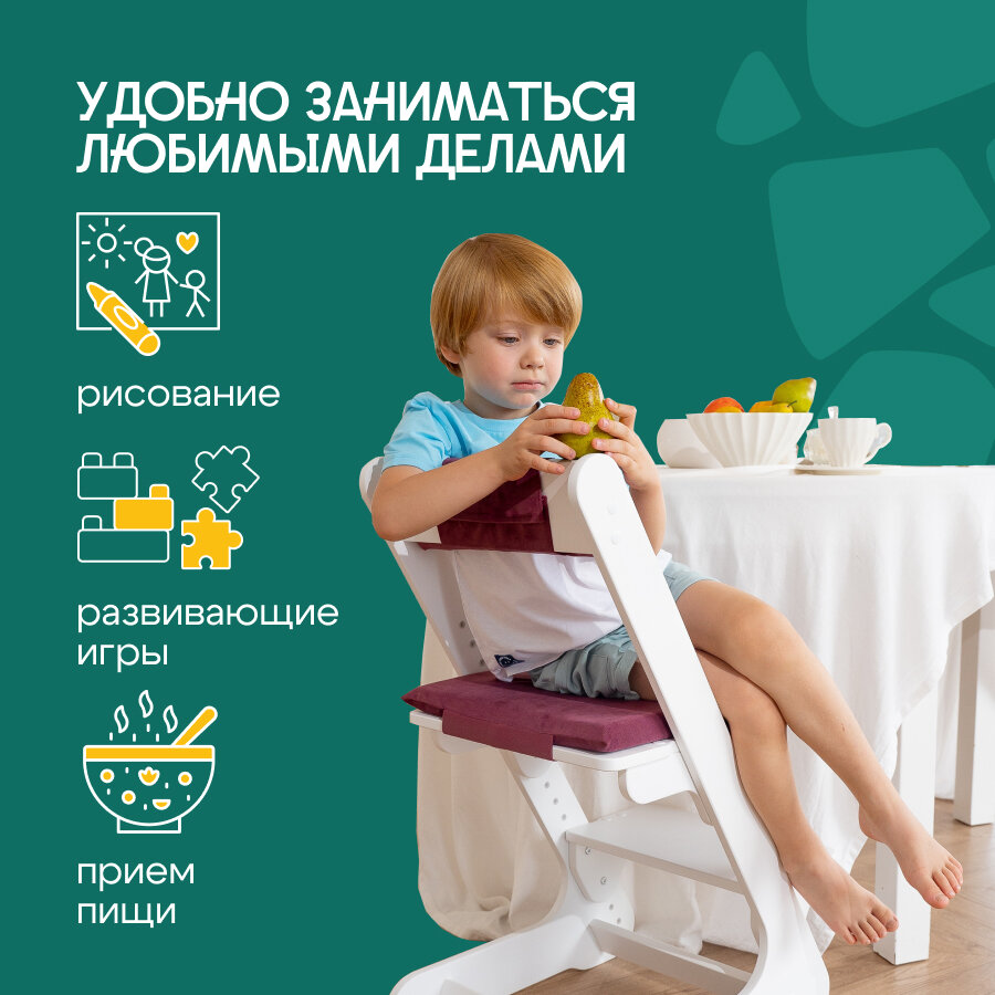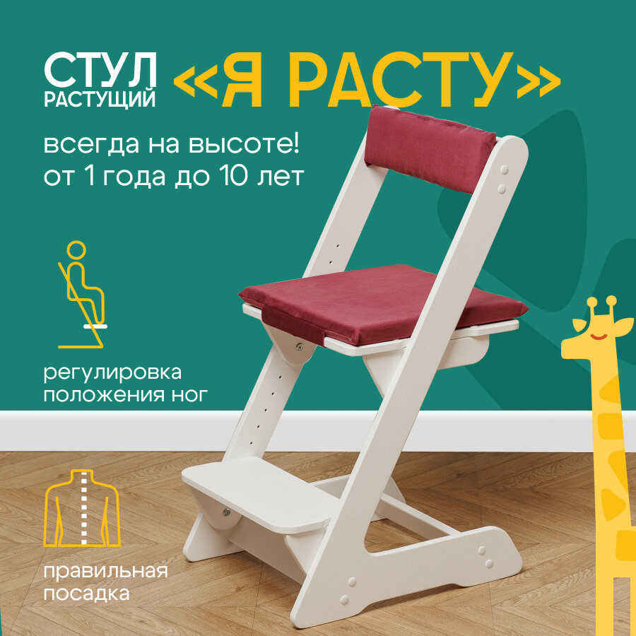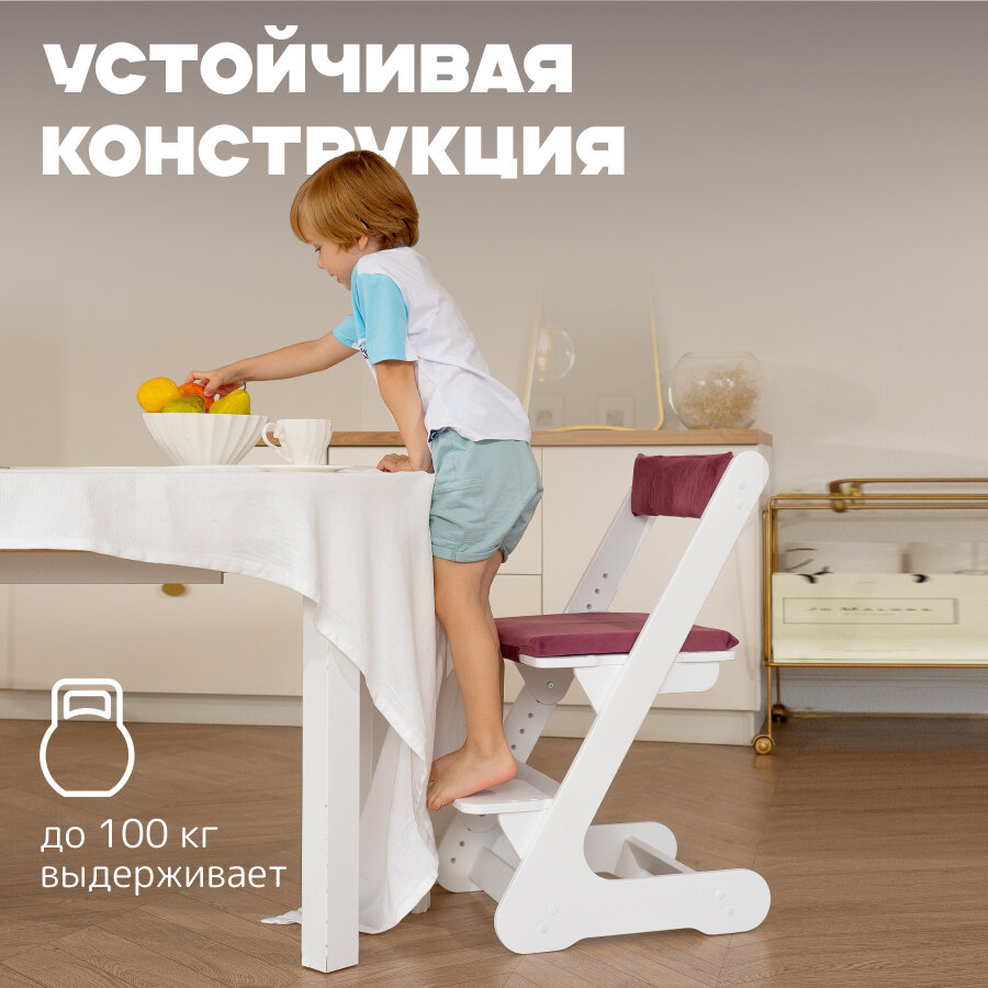 Растущий стул РАСТУЛЬЧИК для детей белый с бордовой подушкой