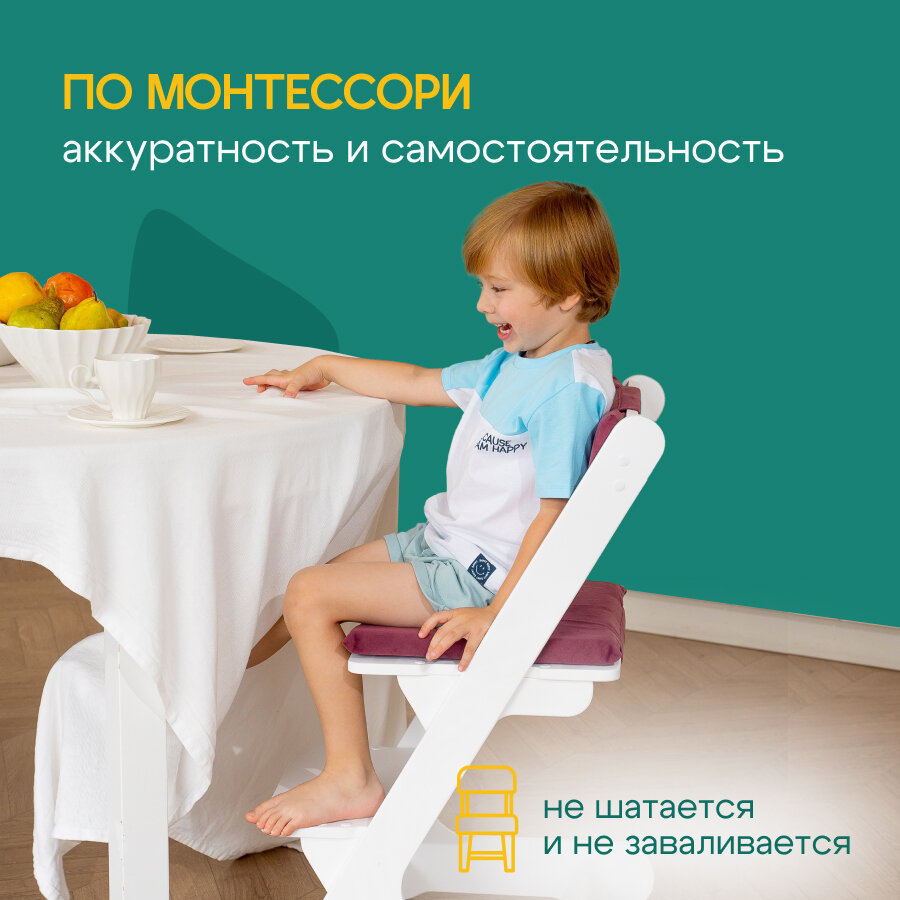 Растущий детский стул Pappado "РАСТУЛЬЧИК", белый, с подушкой, нагрузка до 100кг