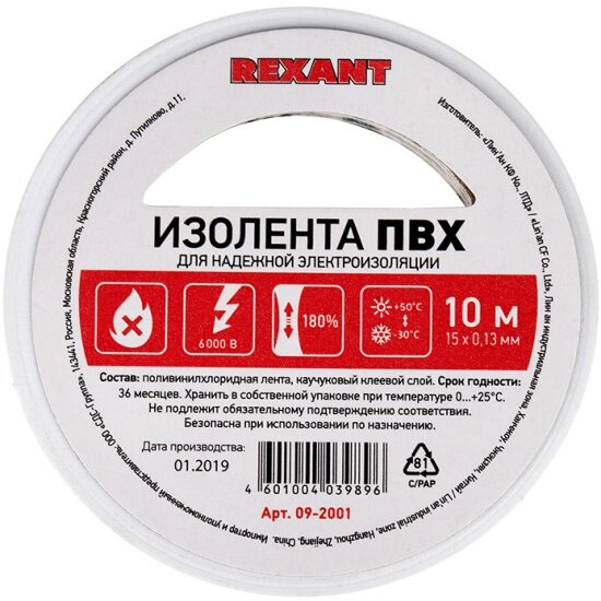 Электроизоляционная лента ПВХ REXANT 15 мм х 10 м, 130 мкм, белая (10 шт./упак.) интересное: