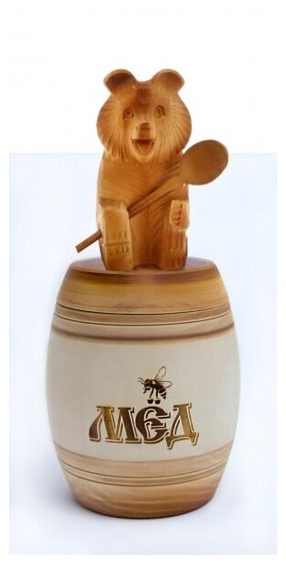 Бочонок вощеный с резным медведем на крышке Малый интересное: