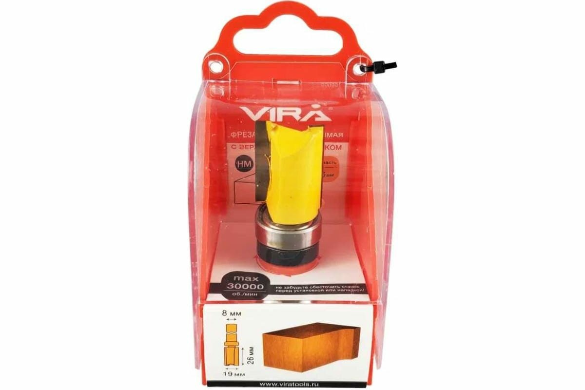 Купить Фреза кромочная прямая обгонная с верхним подшипником 19 х 26 мм хвостовик 8 мм VIRA