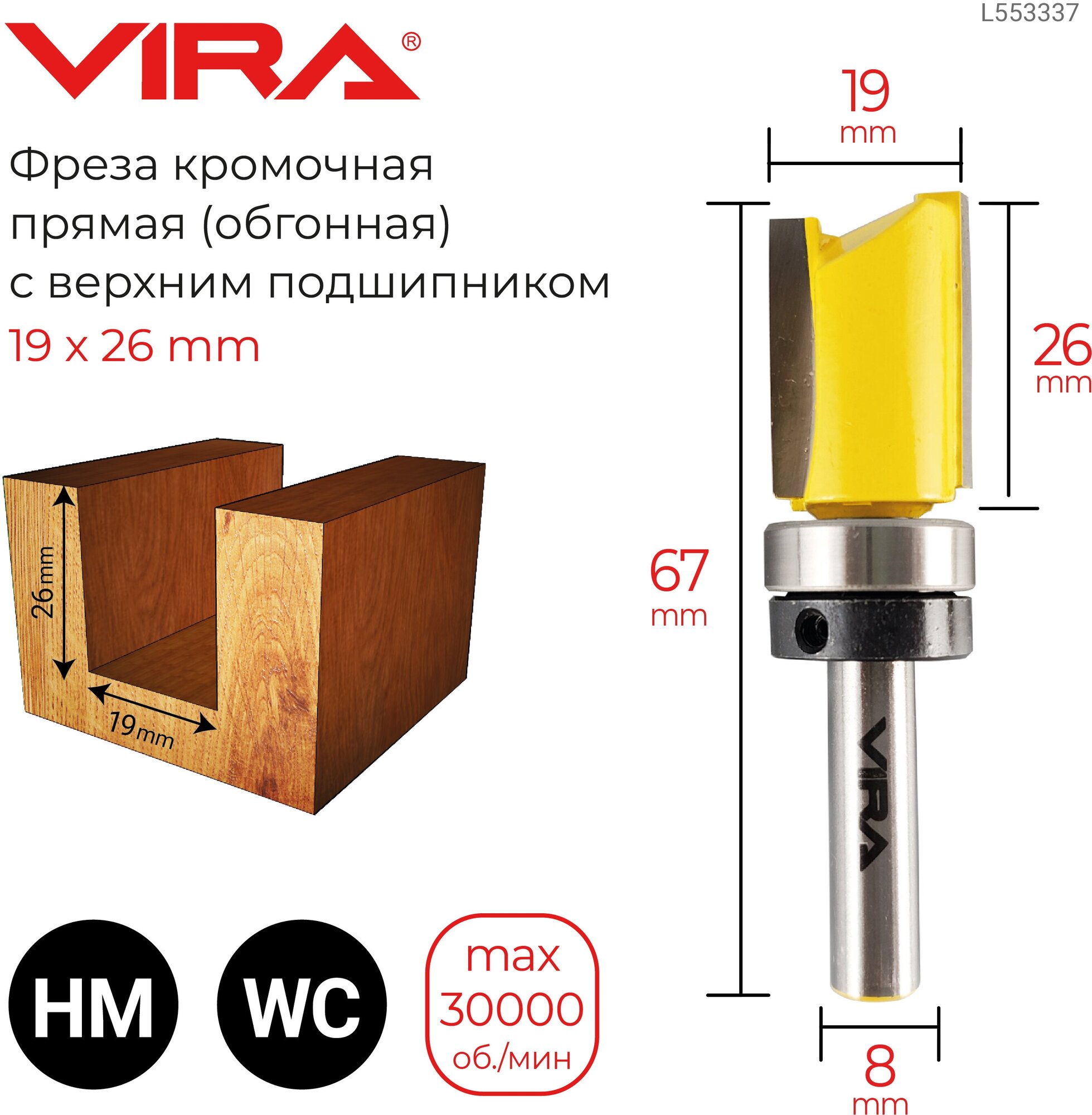 Фреза кромочная прямая обгонная с верхним подшипником 19 х 26 мм хвостовик 8 мм VIRA интересное:
