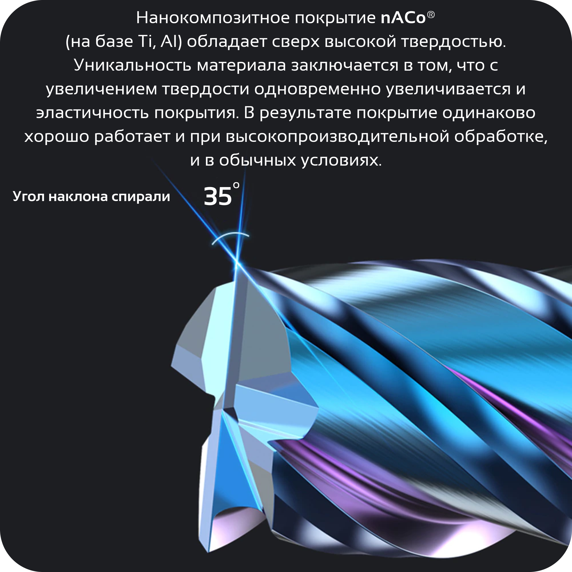 СохранитьФреза по металлу концевая 3d*8C*4D*L50*4F HRC65 монолитная сверхтвёрдая с нанокомпозитным напылением nACo интересное:
