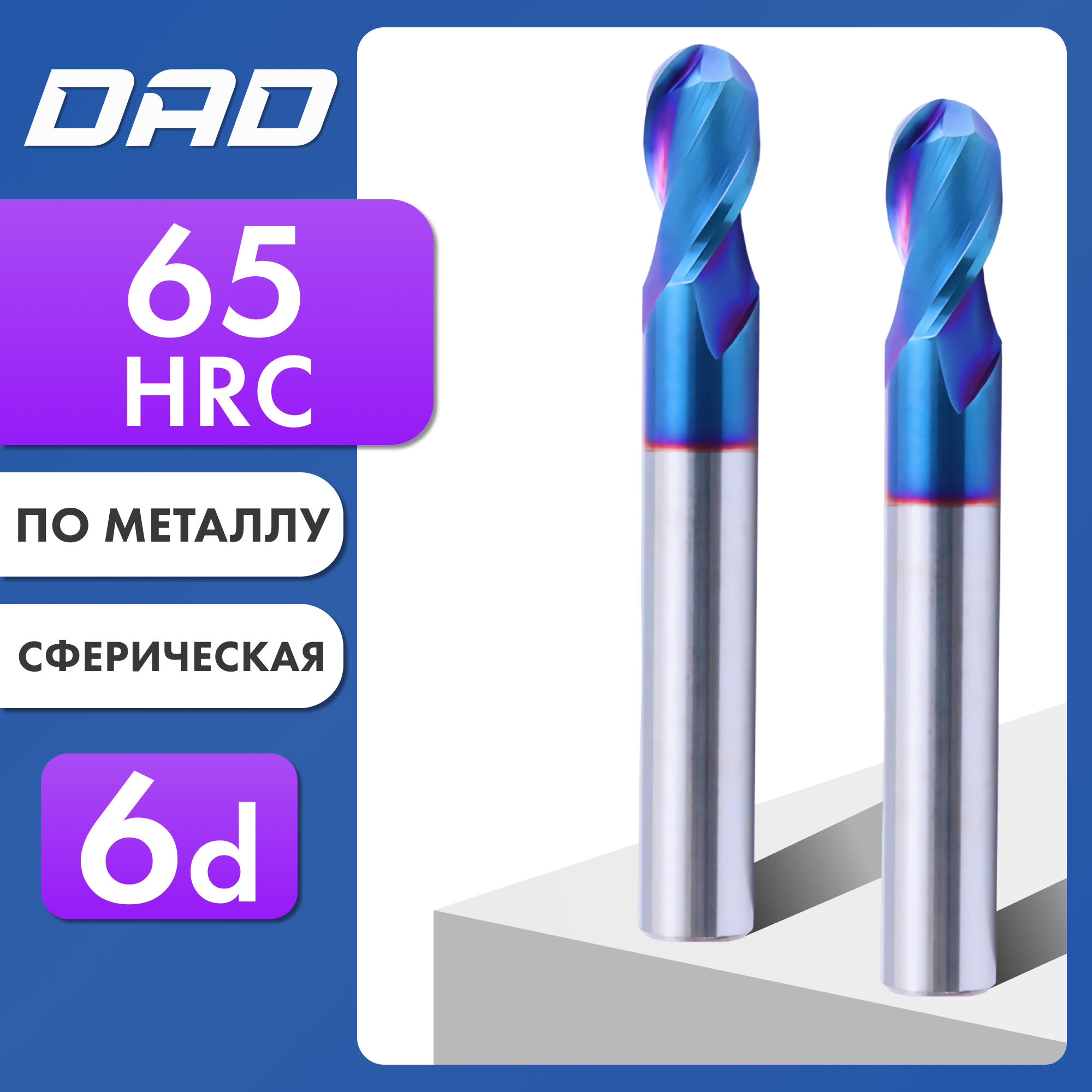 Фреза по металлу сферическая 2R*4d*6C*4D*50L*2F HRC65 монолитная сверхтвёрдая с нанокомпозитным покрытием nACo