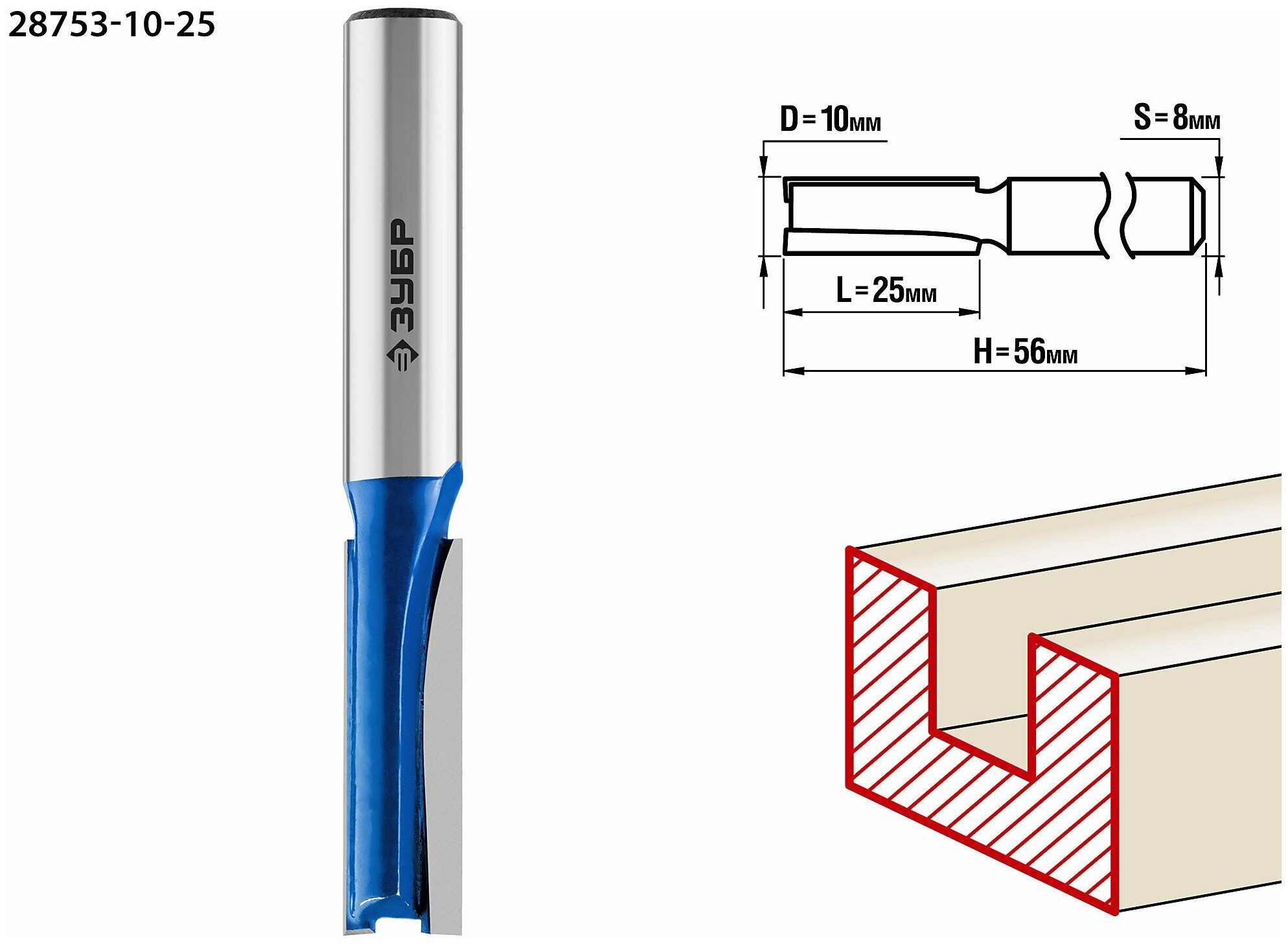 ЗУБР 3x10мм, хвостовик 8мм, фреза пазовая прямая, 28753-3-10, серия Профессионал