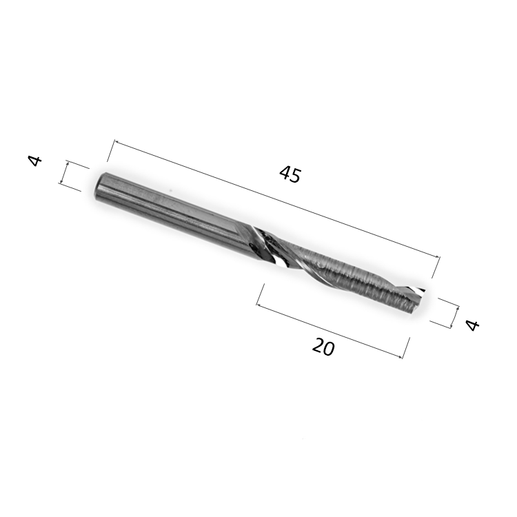 Фреза DJTOL AL1LX4.20 спиральная однозаходная по алюминию, меди, латуни, композитному материалу