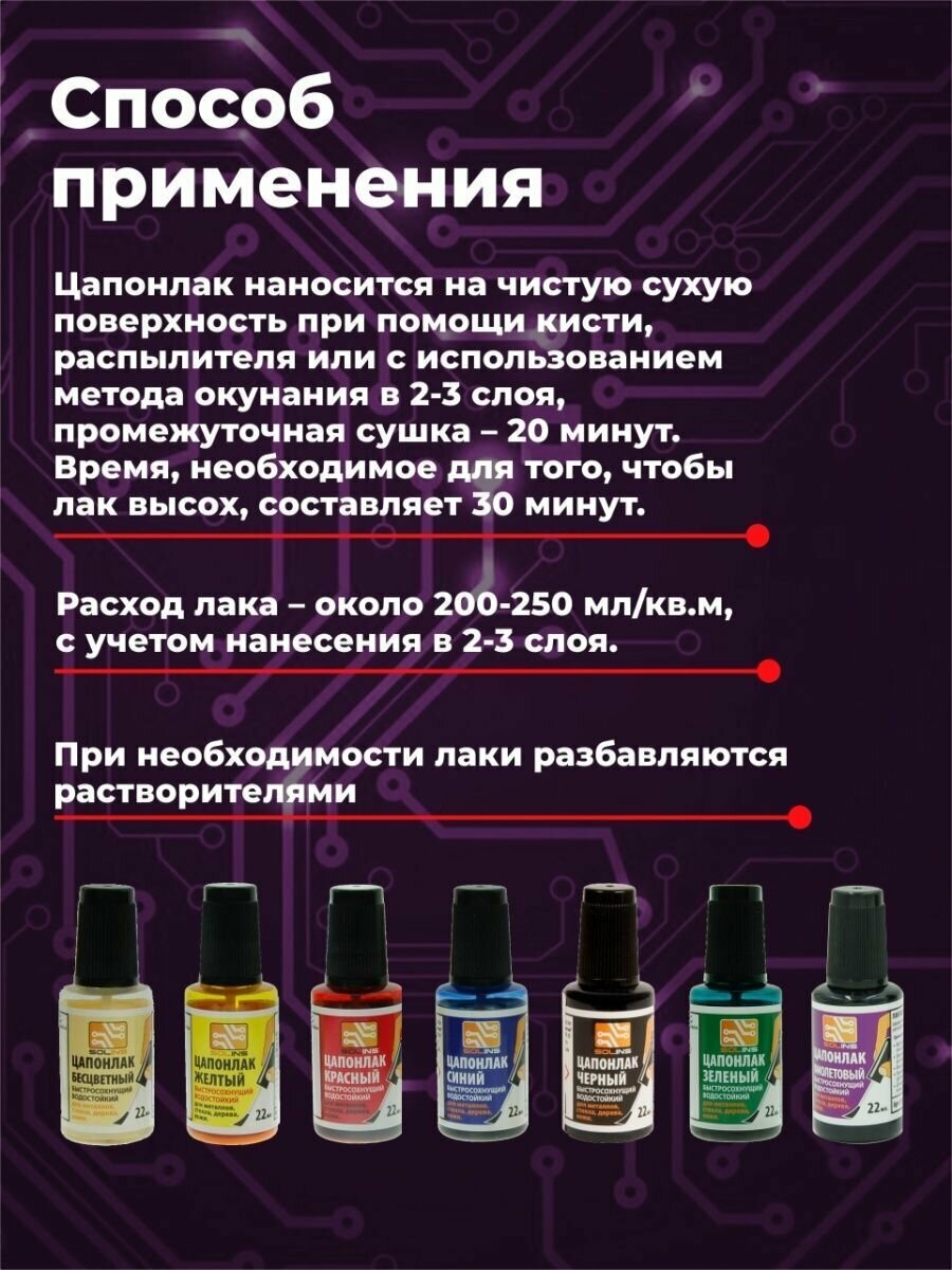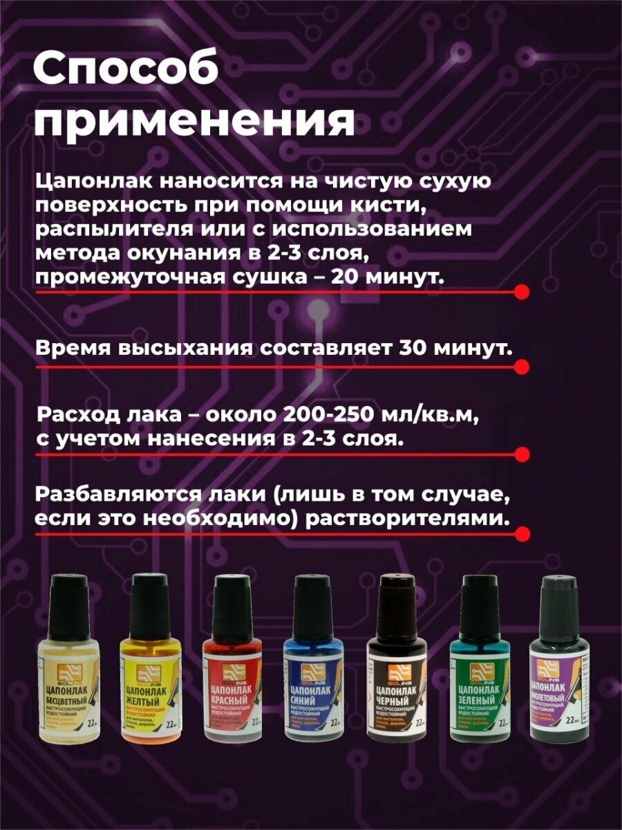 Цапон лак Solins быстросохнущий водостойкий, защитный для металла, стекла ламп, дерева, печатных плат / Цапонлак защита от коррозии для наружных и внутренних работ, фиолетовый набор 3 шт. по 22 мл