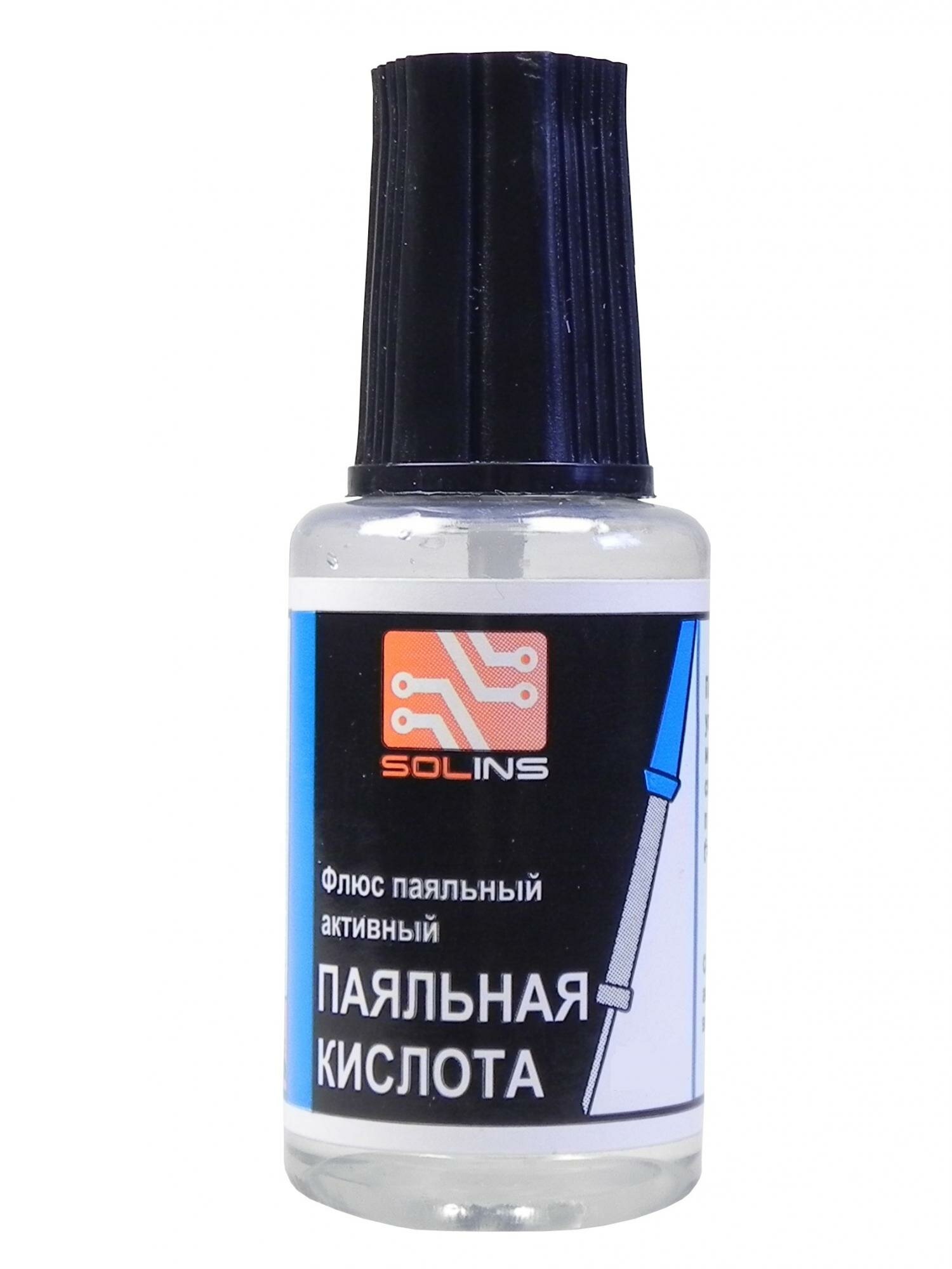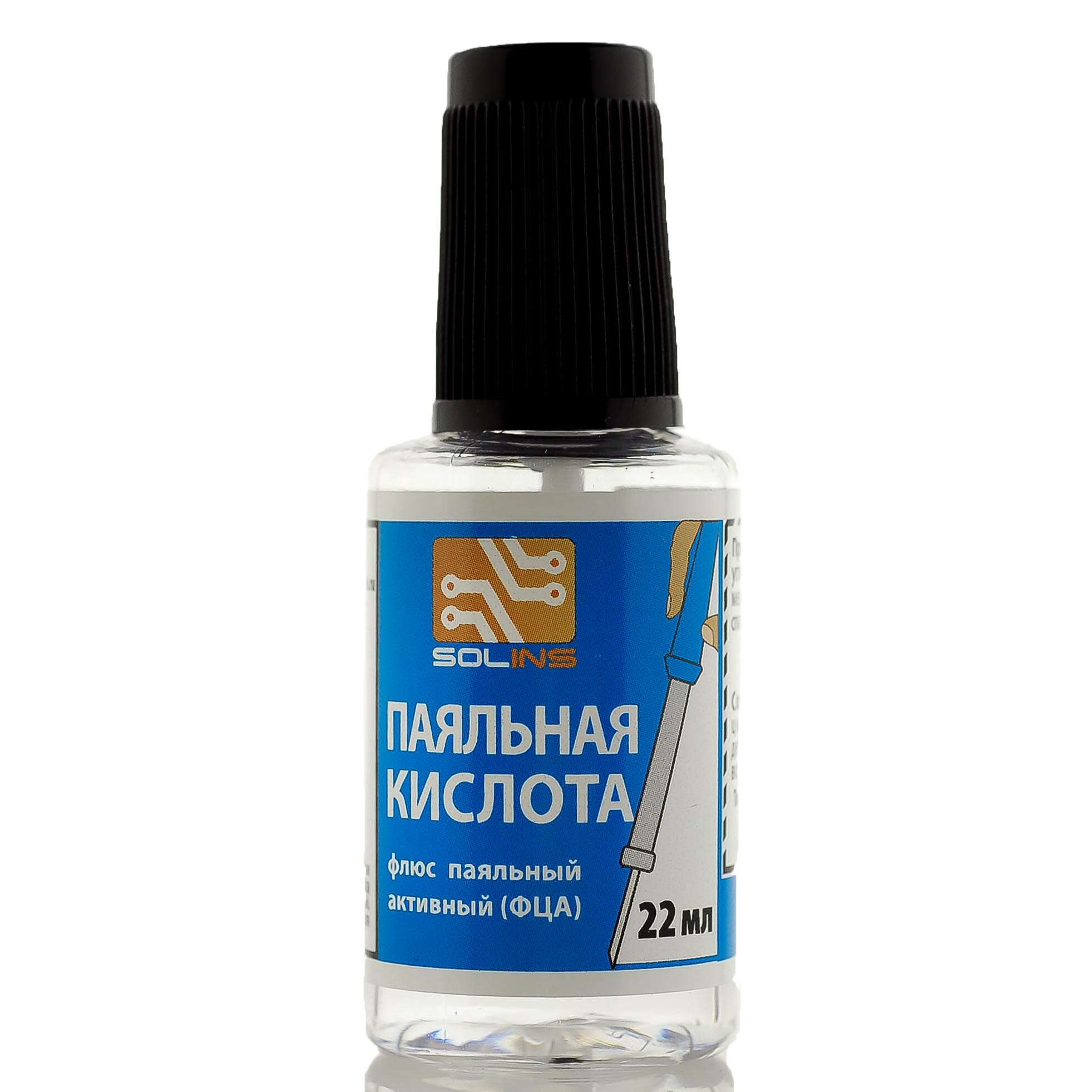 Купить Паяльная кислота Solins ФЦА, активный флюс для пайки меди, стали, никеля, флакон с кисточкой, 22 мл