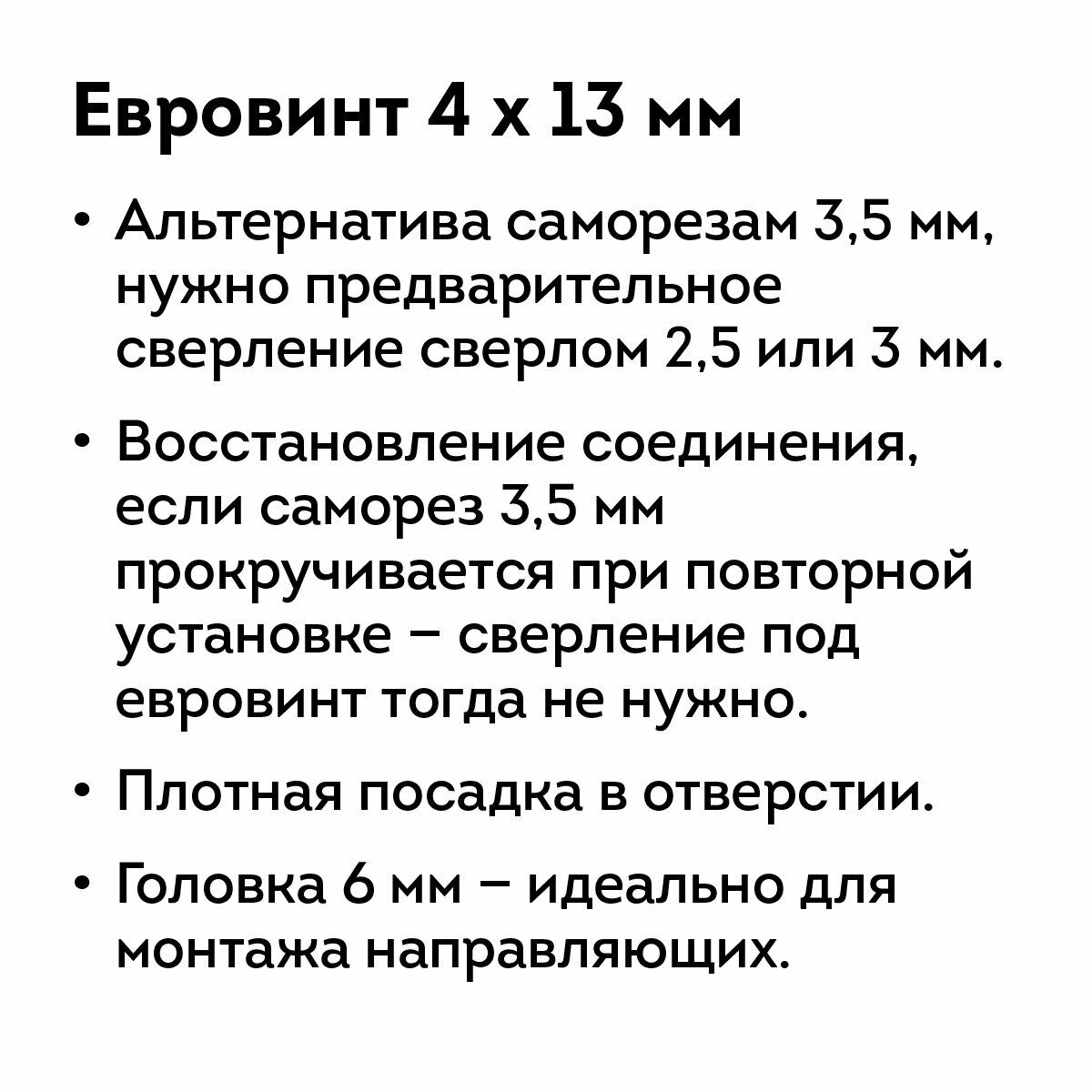 Евровинт еврошуруп 4х13, 60 шт., потайная головка интересное: