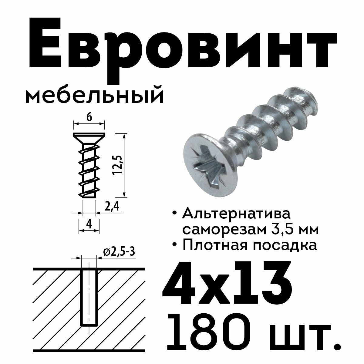 Евровинт еврошуруп 4х13, 180 шт., потайная головка интересное: