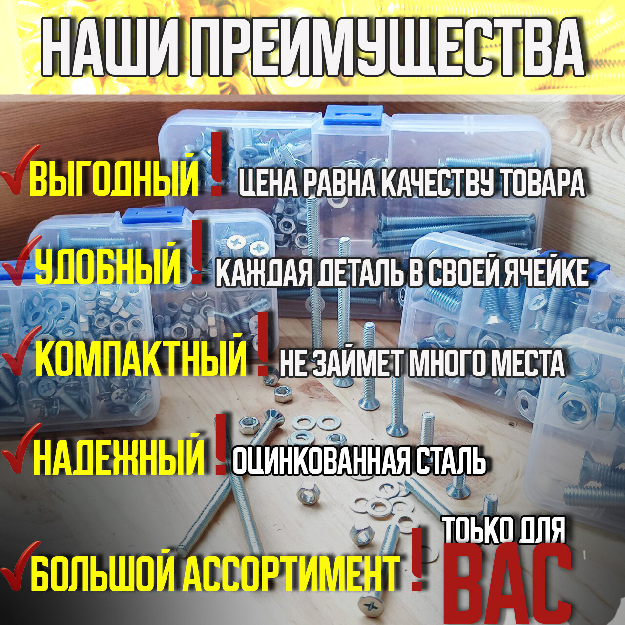 Комплект винт М3, М4.,М5,М6,М8, гайка в органайзере