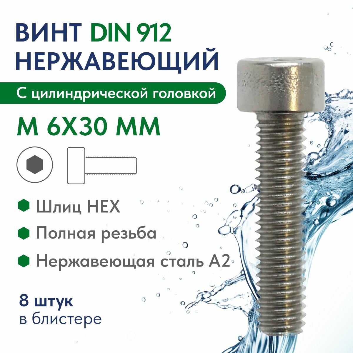 Винт цилиндр.голов. внутр.шестингран. М 6Х30 нержавеющая сталь A2 DIN 912, блистер 8 шт. интересное: