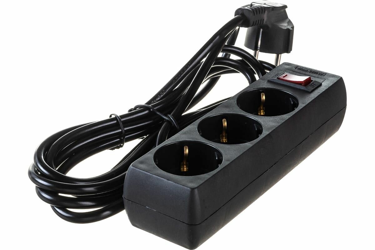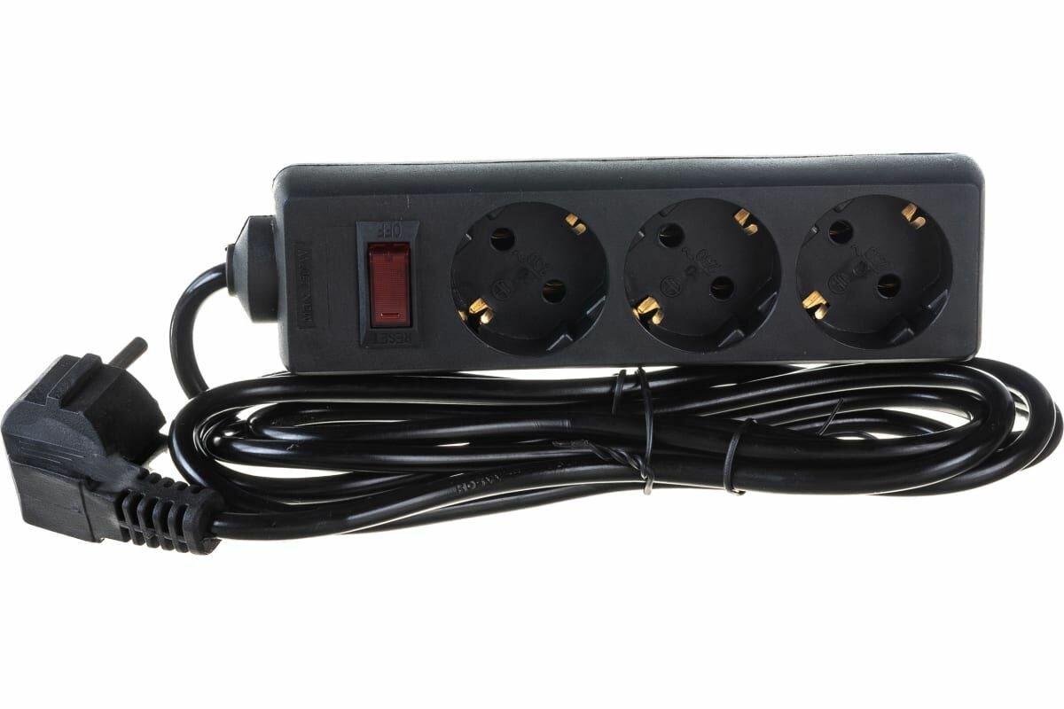 Сетевой фильтр ExeGate SP-3-3B (3 евророзетки с заземлением, 3м, защита от перегрузки, выключатель с подсветкой, черный) EX221179RUS