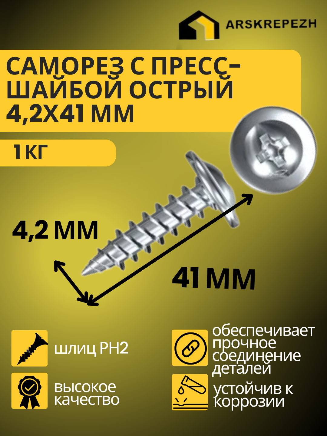 Саморез с пресс-шайбой 4,2 х 19 сверло 1 кг Накрепко