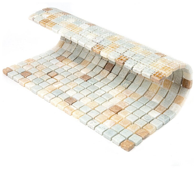 Мозаичная плитка из мрамора Natural Mosaic 7MT-05-15T зеленый бежевый светлый квадрат матовый интересное: