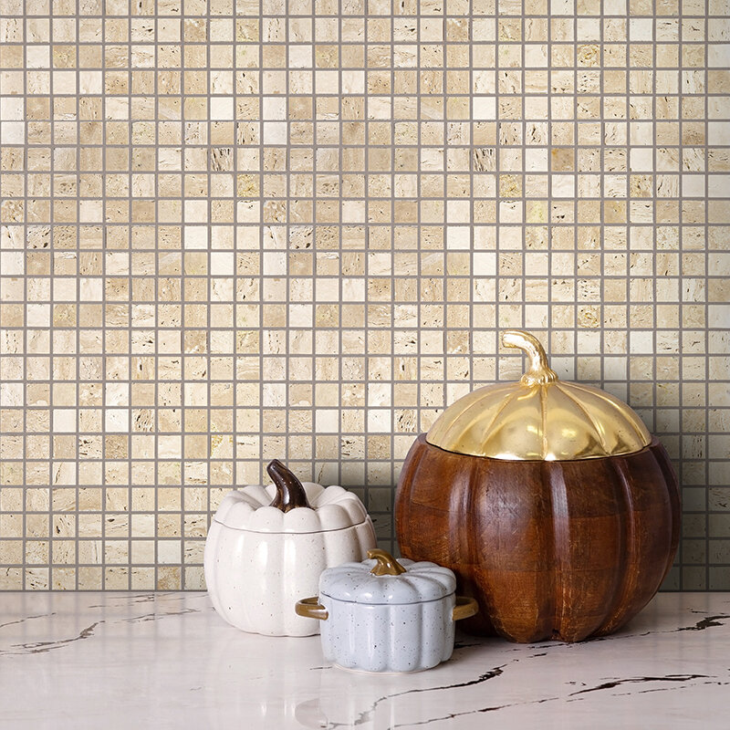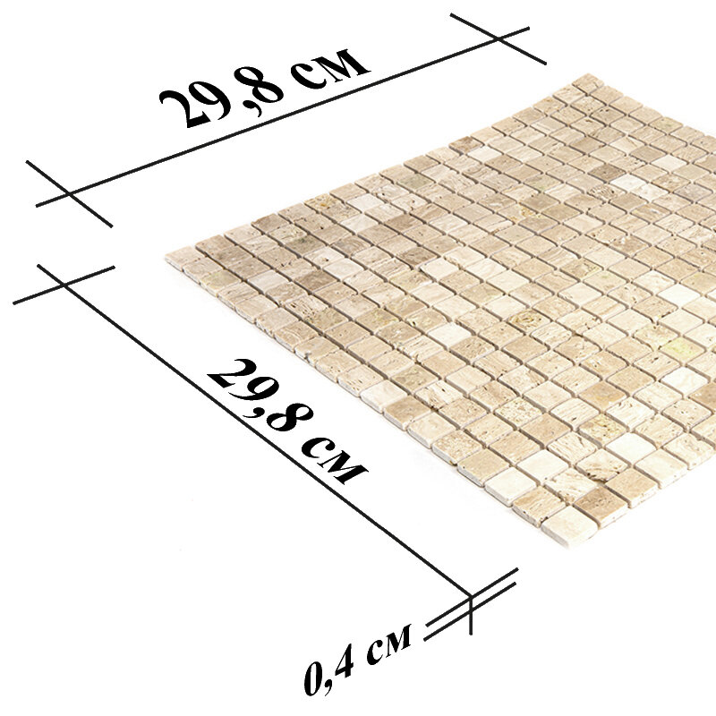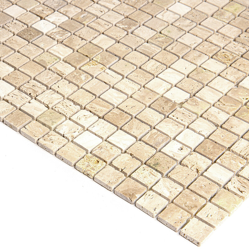 Купить Мозаика Natural 4M090-15P-Travertine из глянцевого травертина размер 29.8х29.8 см чип 15x15 мм толщ. 4 мм площадь 0.089 м2 на сетке