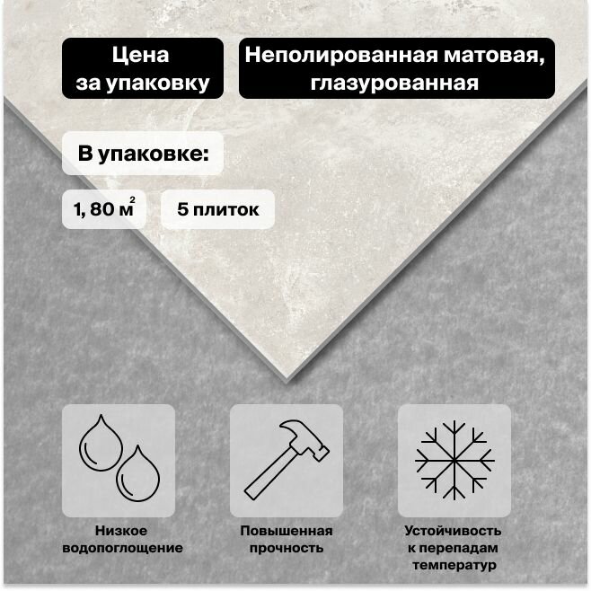Керамогранит Laparet Flagman светло-серый 60x60 см, 1,8 м2 (в упаковке 5 шт.)