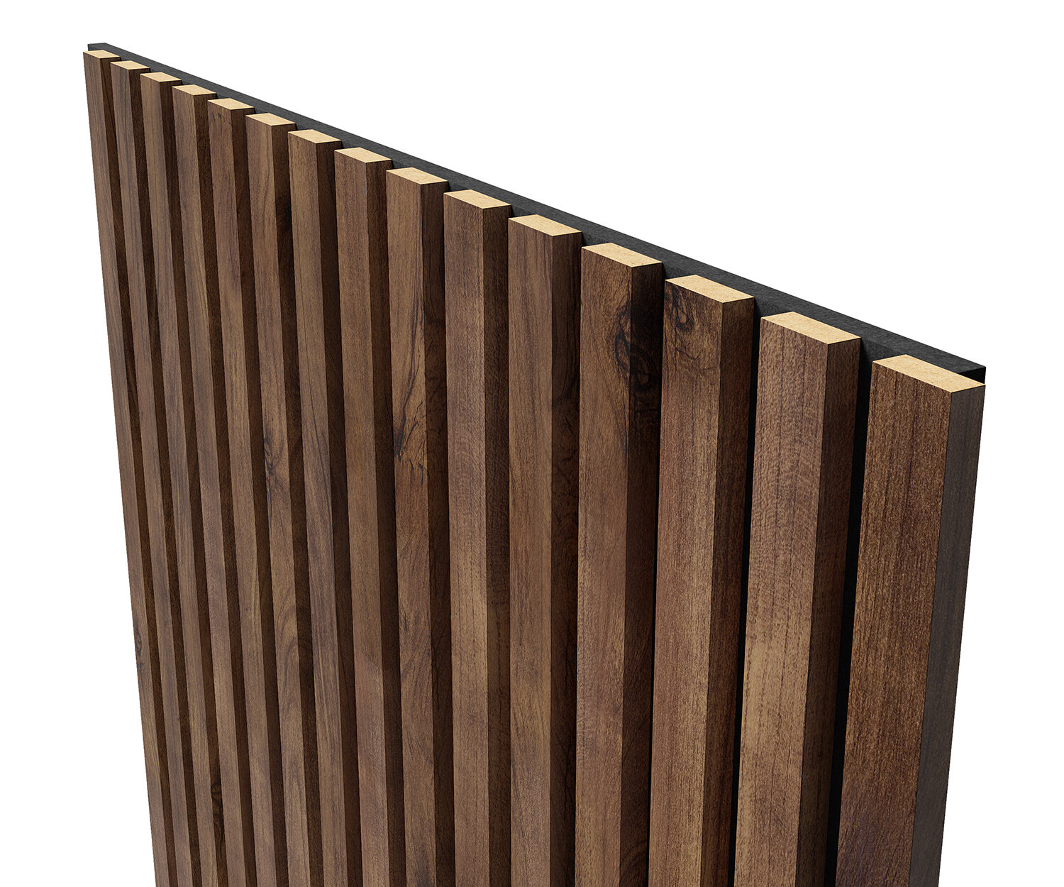 Акустическая панель, черный войлок, 1200х600х19мм, рейки МДФ цвет - дуб барон темный. Панель АCUSTICA. Cosca Decor