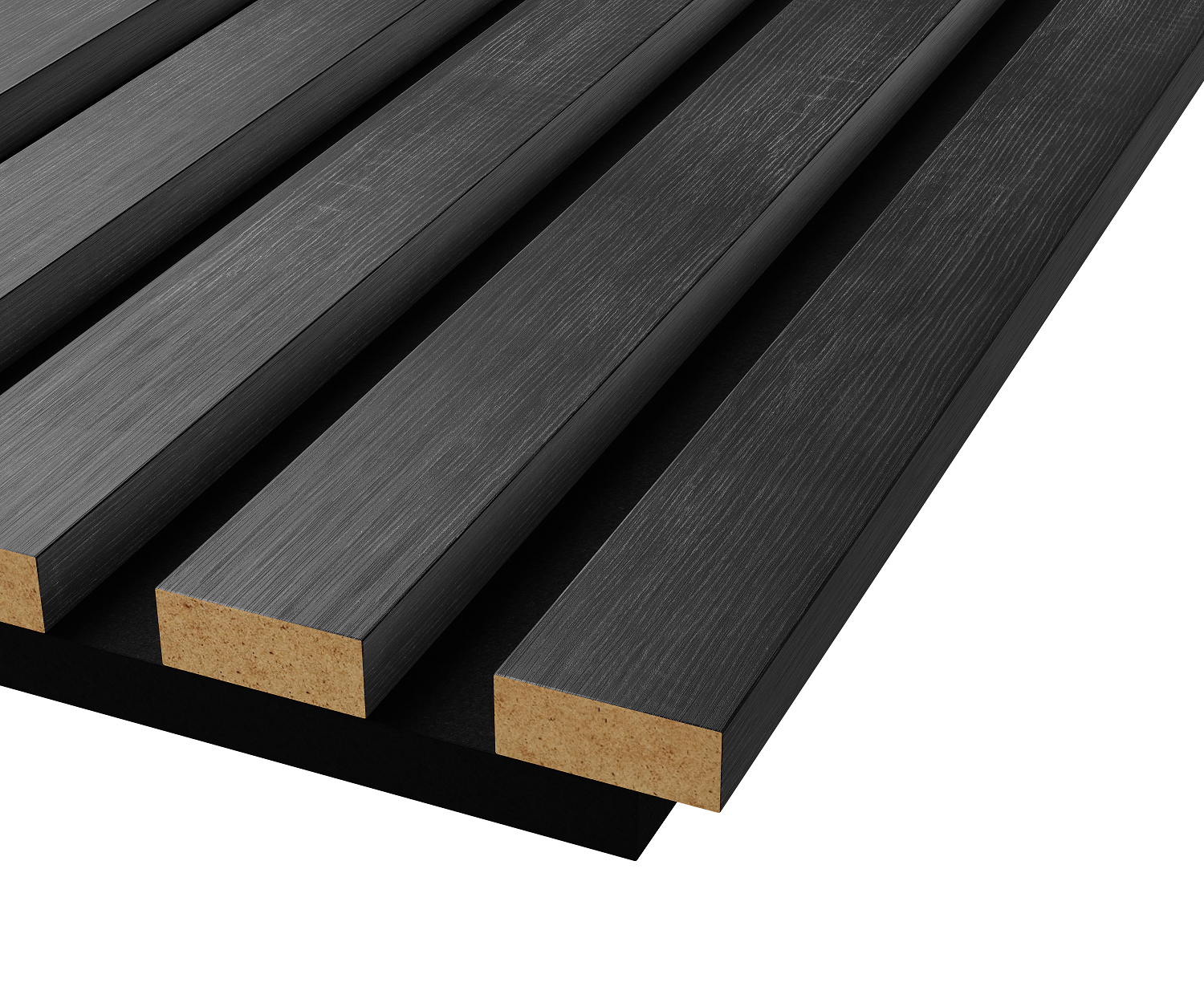 СохранитьАкустическая панель, черный войлок, 1200х600х19мм, рейки МДФ цвет - дуб графит. Панель АCUSTICA. Cosca Decor интересное: