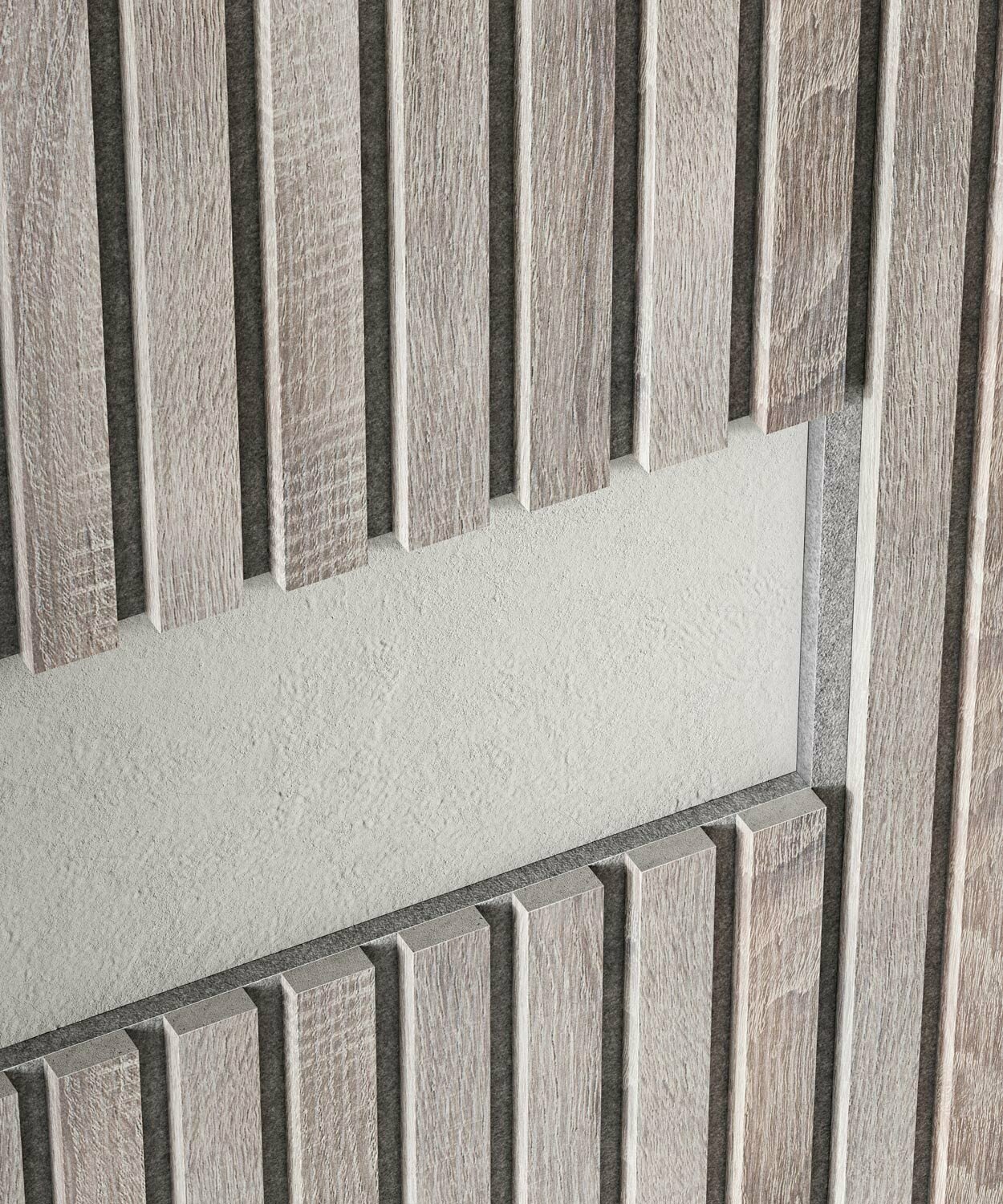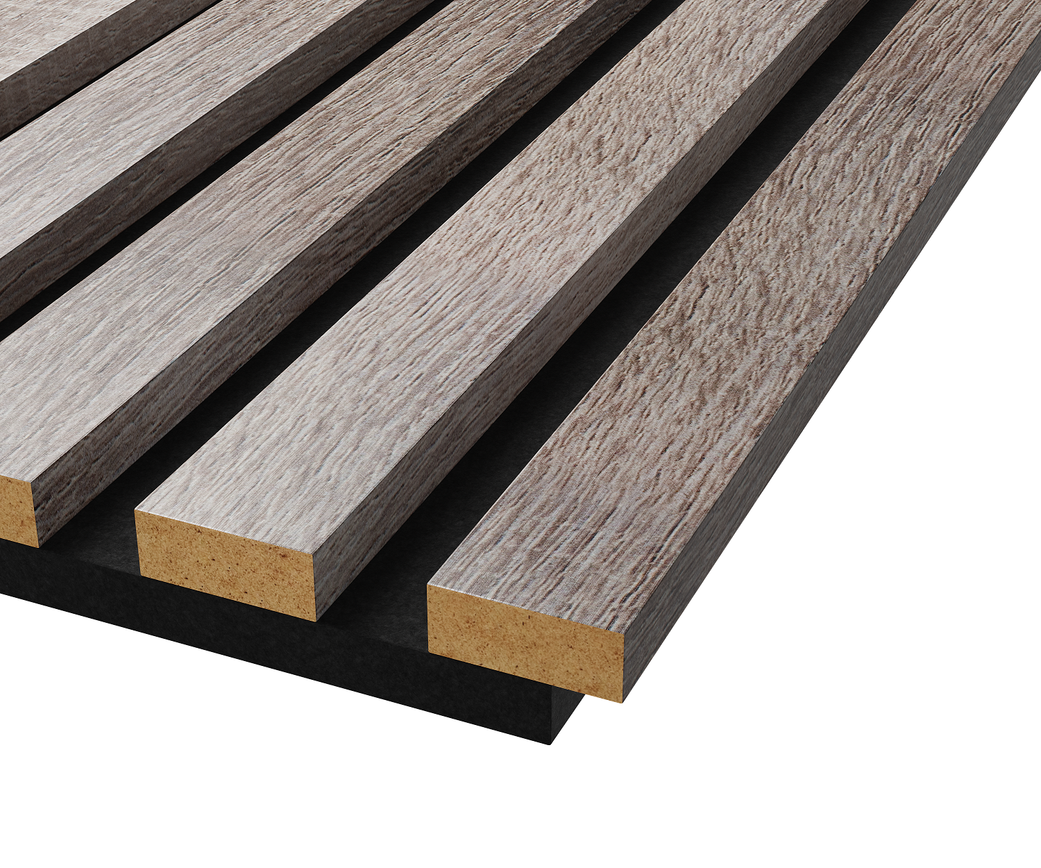 Акустическая панель, черный войлок, 1200х600х19мм, рейки МДФ цвет - дуб старинный светло-серый. Панель АCUSTICA. Cosca Decor