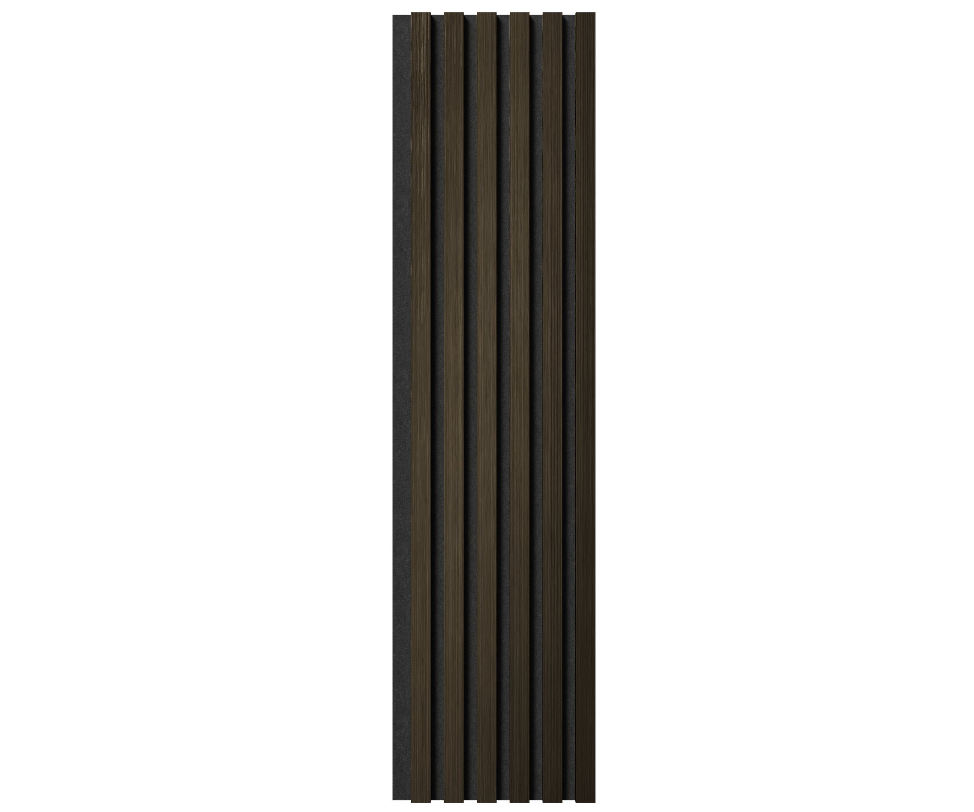 Акустическая панель, черный войлок, 1200х600х21мм, рейки МДФ, шпон дуб антрацит темно-серый. Cosca Decor
