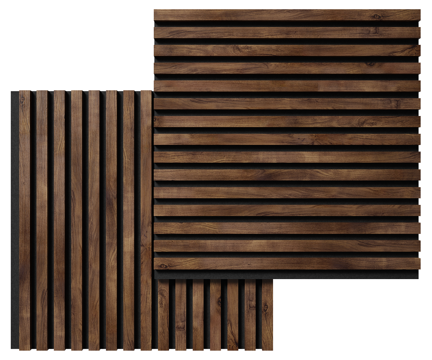 Акустические стеновые панели, 600х600х19мм, черный войлок, рейки МДФ цвет - барон дуб темный. Панель АCUSTICA. Cosca Decor