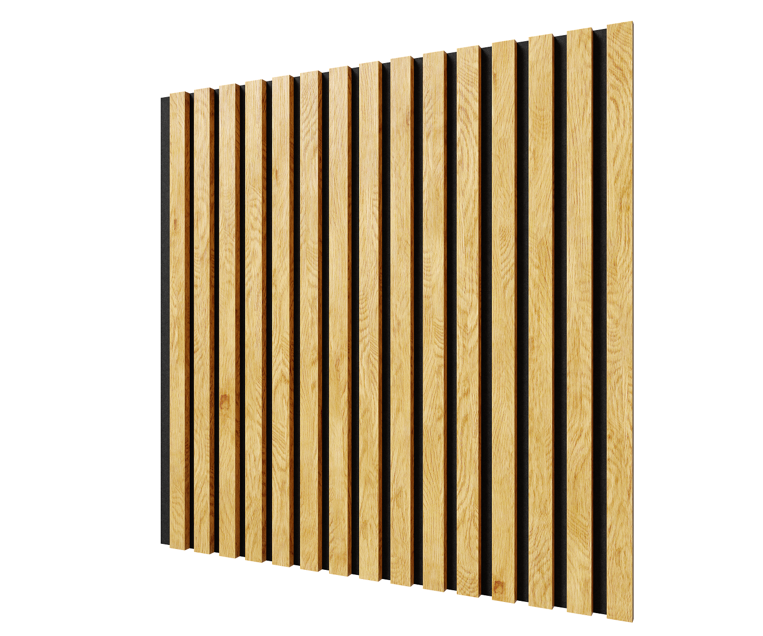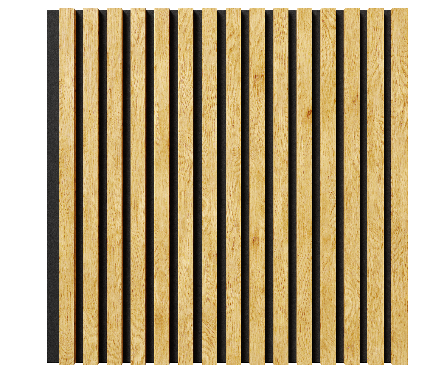 Акустическая панель, черный войлок, 600х600х21мм, рейки МДФ, шпон дуб клэр светлый. Cosca Decor