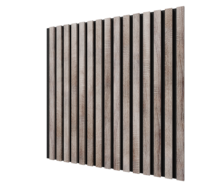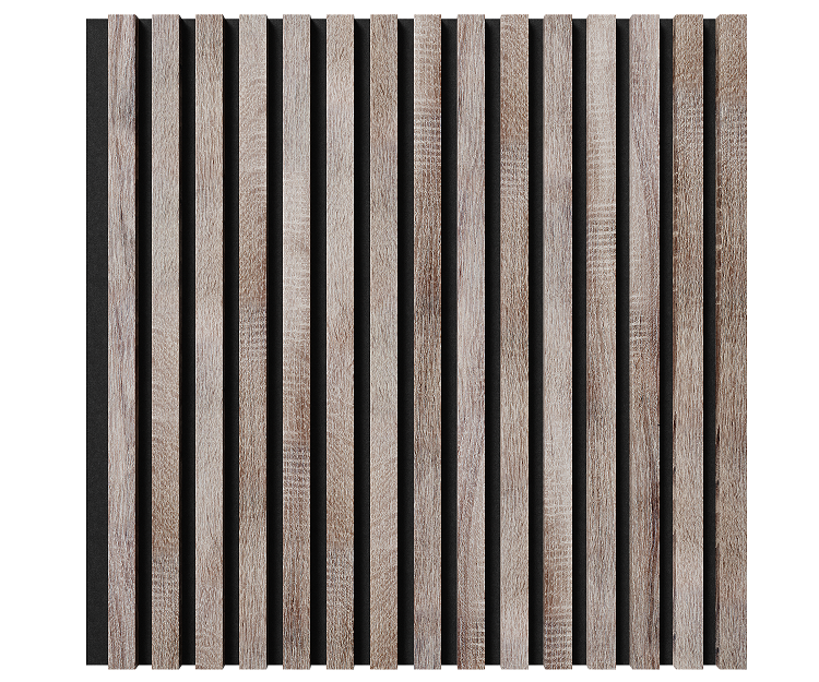 Акустические стеновые панели, 600х600х19мм, черный войлок, рейки МДФ цвет - дуб старинный светло-серый. Панель АCUSTICA. Cosca Decor
