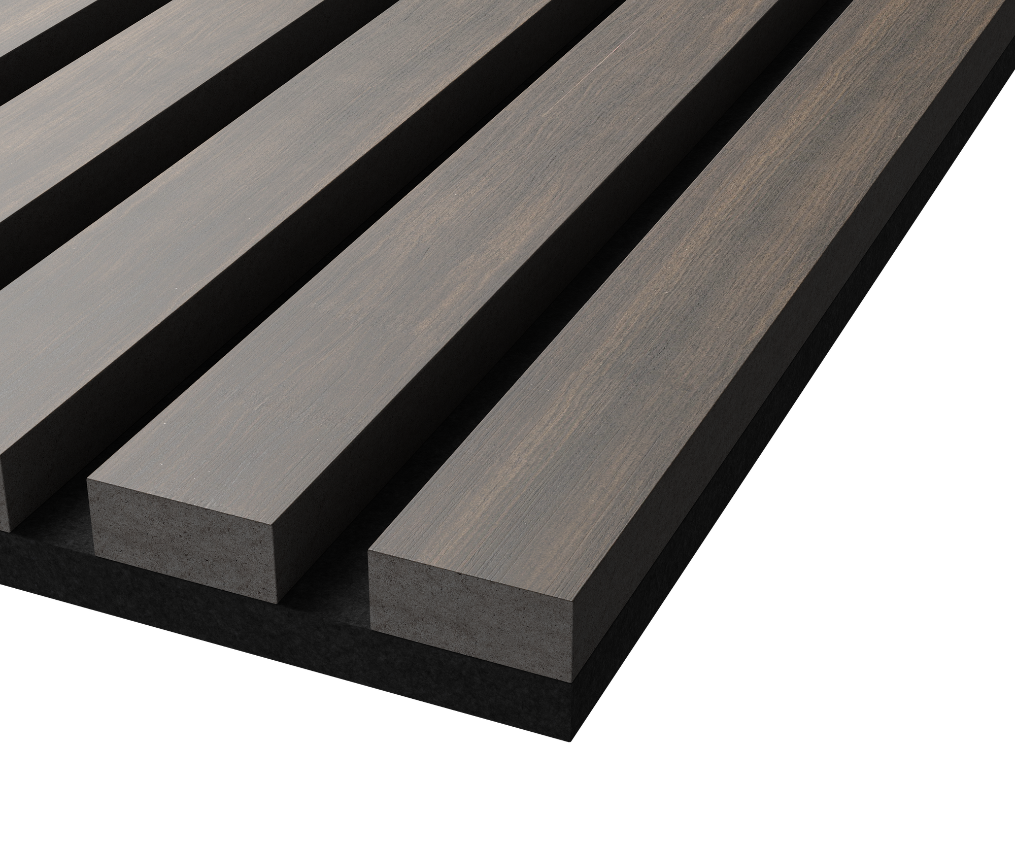 Акустическая панель, черный войлок, 600х600х21мм, рейки МДФ, шпон дуб антрацит темно-серый. Cosca Decor