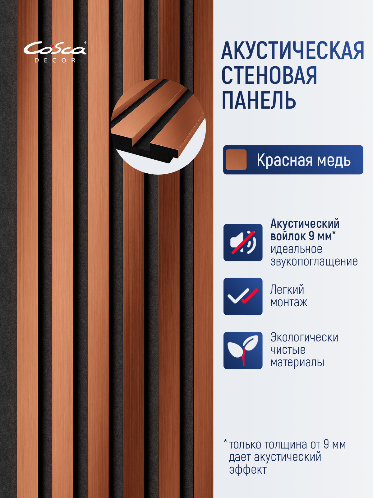 СохранитьАкустическая панель, черный войлок, 600х300х19мм, рейки экополимер, красная медь, комплект 2 шт. интересное: