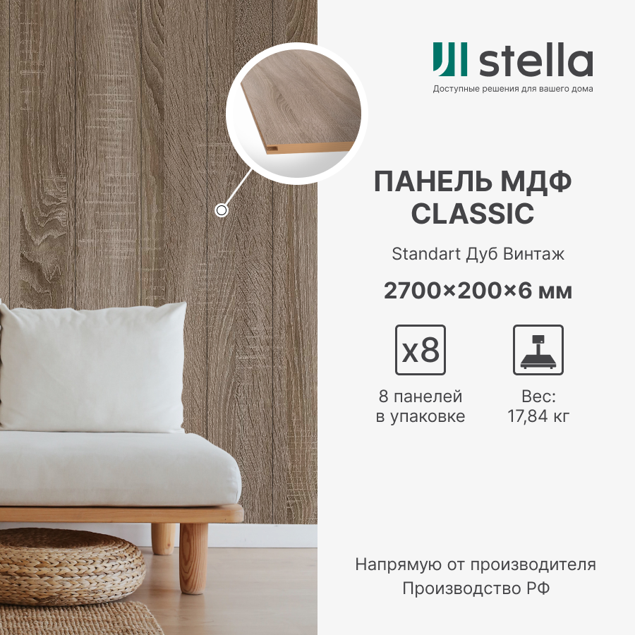 Стеновые панели МДФ Classic Stella Standart 2700х200х6 для гостиной, прихожей, спальни, детской, кабинета, кухни Дуб Винтаж (упак. 8 шт.) интересное: