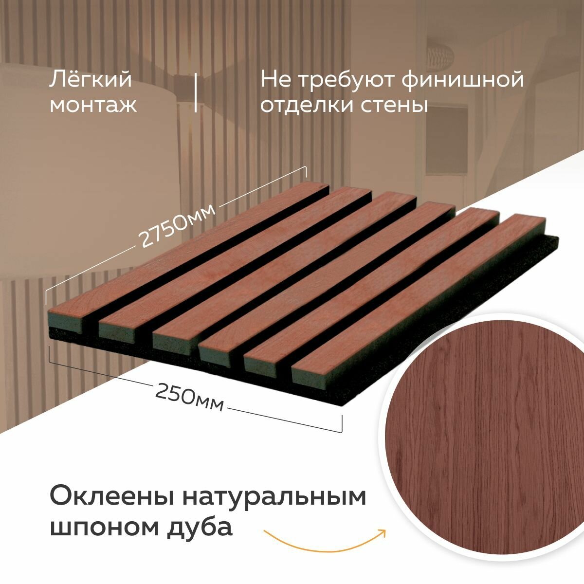 Интерьерная декоративная рейка Evergreen 2750*250 4 шт, реечные панели для стен, мдф, цвет натуральный дуб, деревянная, 3d