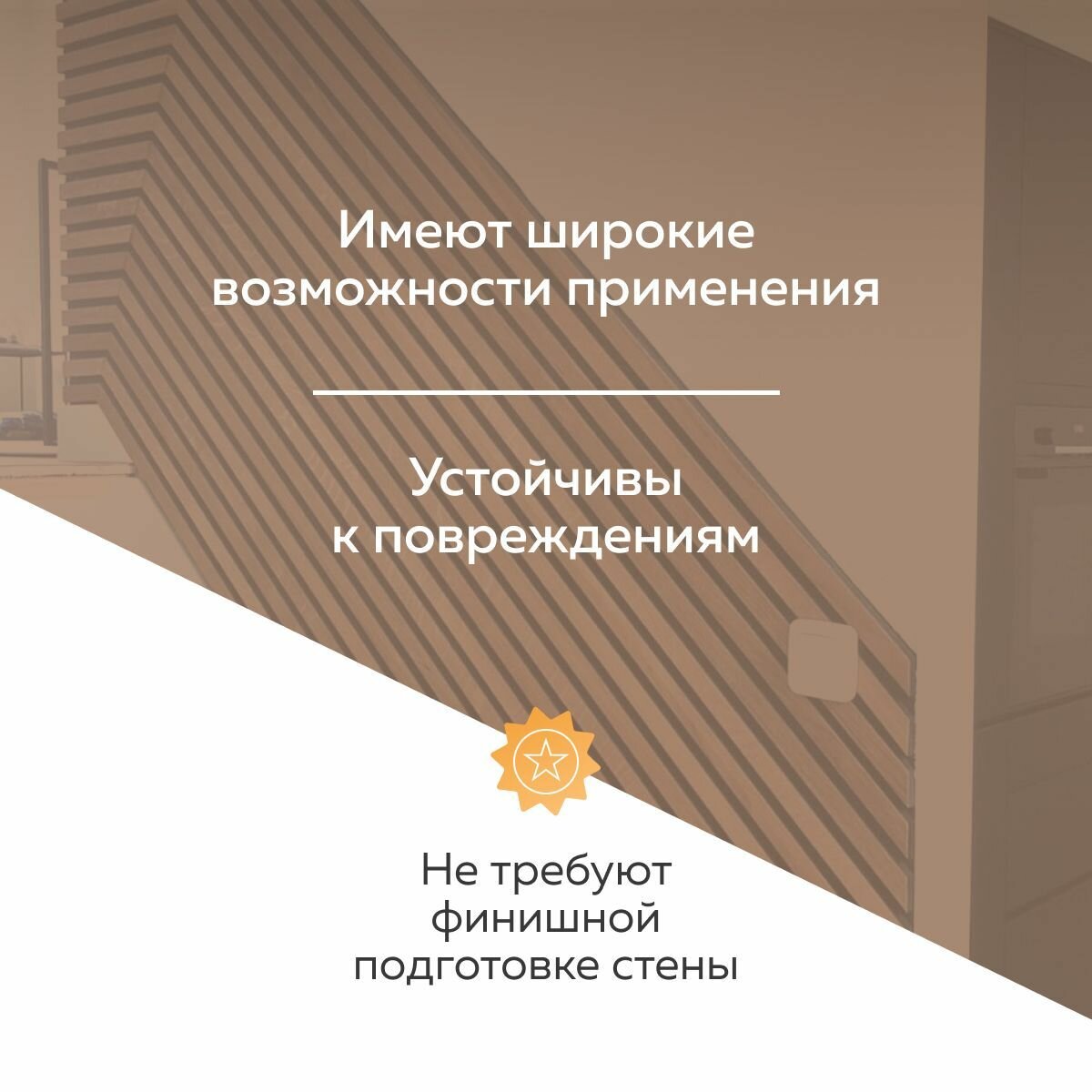 СохранитьДекоративная интерьерная рейка на стену Evergreen 2750*250 4 шт, реечные панели на стену, мдф, цвет орех, дерево, 3d интересное:
