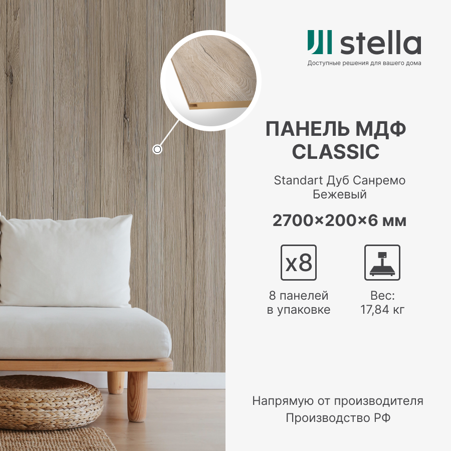 Стеновые панели МДФ Classic Stella Standart 2700х200х6 для гостиной, прихожей, спальни, детской, кабинета, кухни Дуб Санремо Бежевый (упак. 8 шт.) интересное: