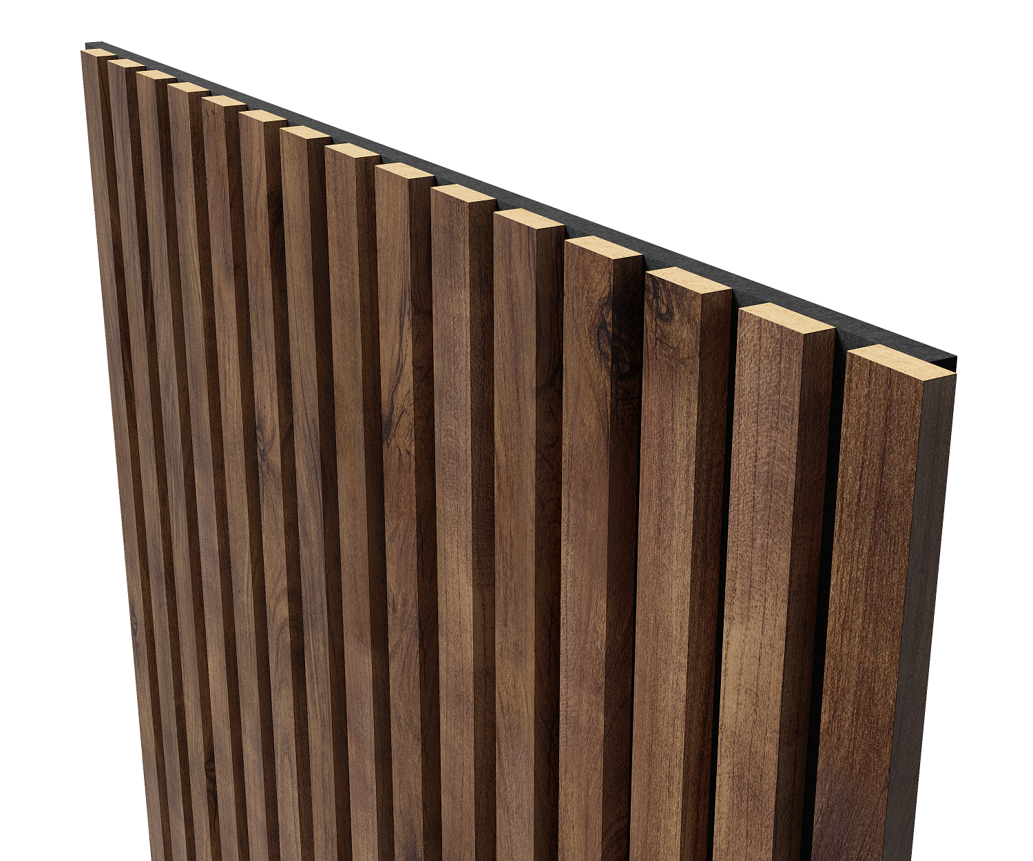 Акустическая панель, черный войлок, 2750х600х19мм, рейки МДФ цвет - дуб барон темный. Панель АCUSTICA. Cosca Decor