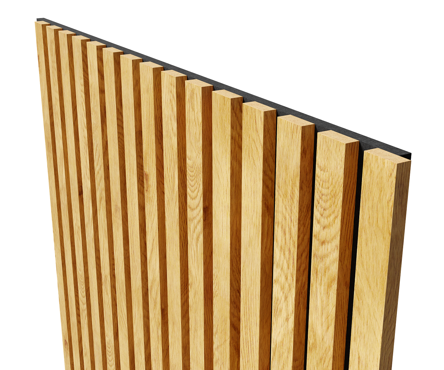 Акустическая панель, черный войлок, 2750х600х21мм, рейки МДФ, шпон дуб клэр светлый. Cosca Decor