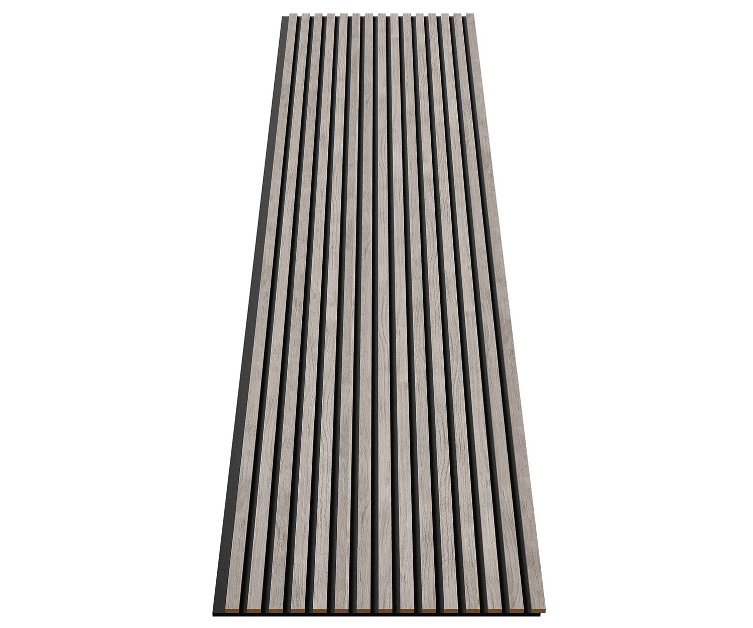 Акустическая панель, черный войлок, 2750х600х21мм, рейки МДФ, шпон дуб ардженто светло-серый. Cosca Decor