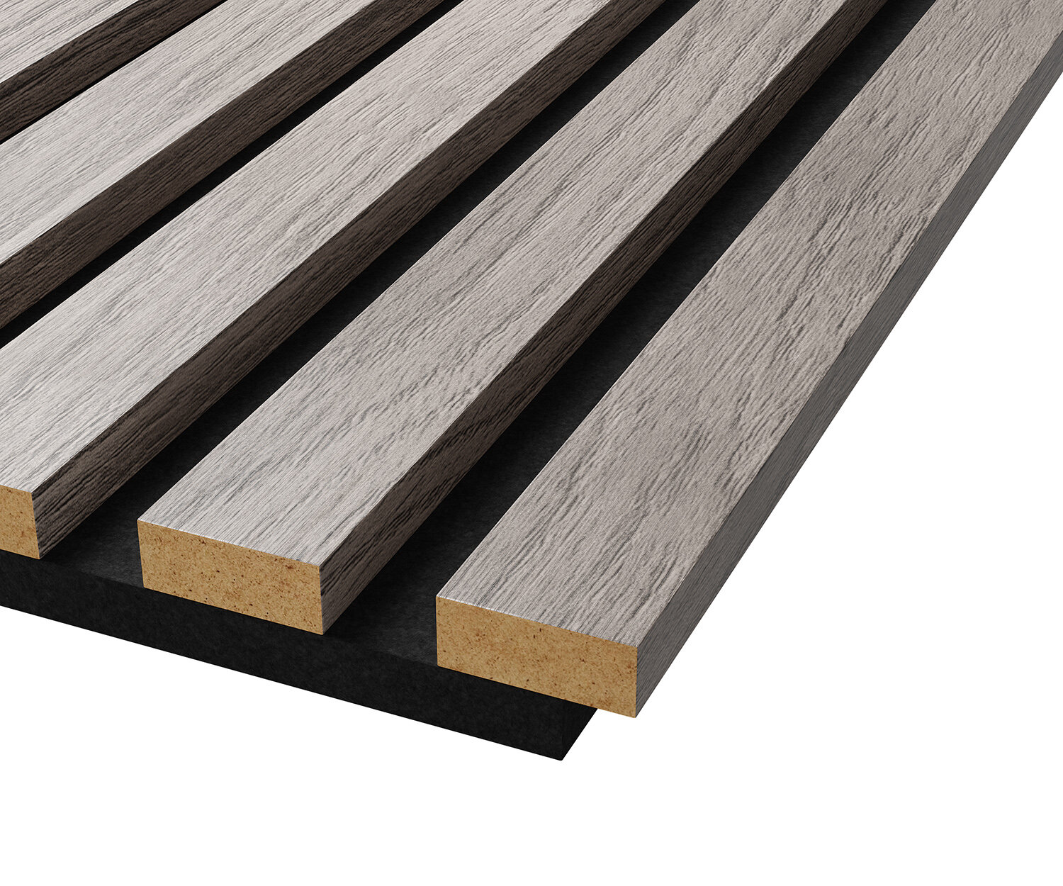 СохранитьАкустическая панель, черный войлок, 2750х600х19мм, рейки МДФ цвет - дуб старинный светло-серый. Панель АCUSTICA. Cosca Decor интересное: