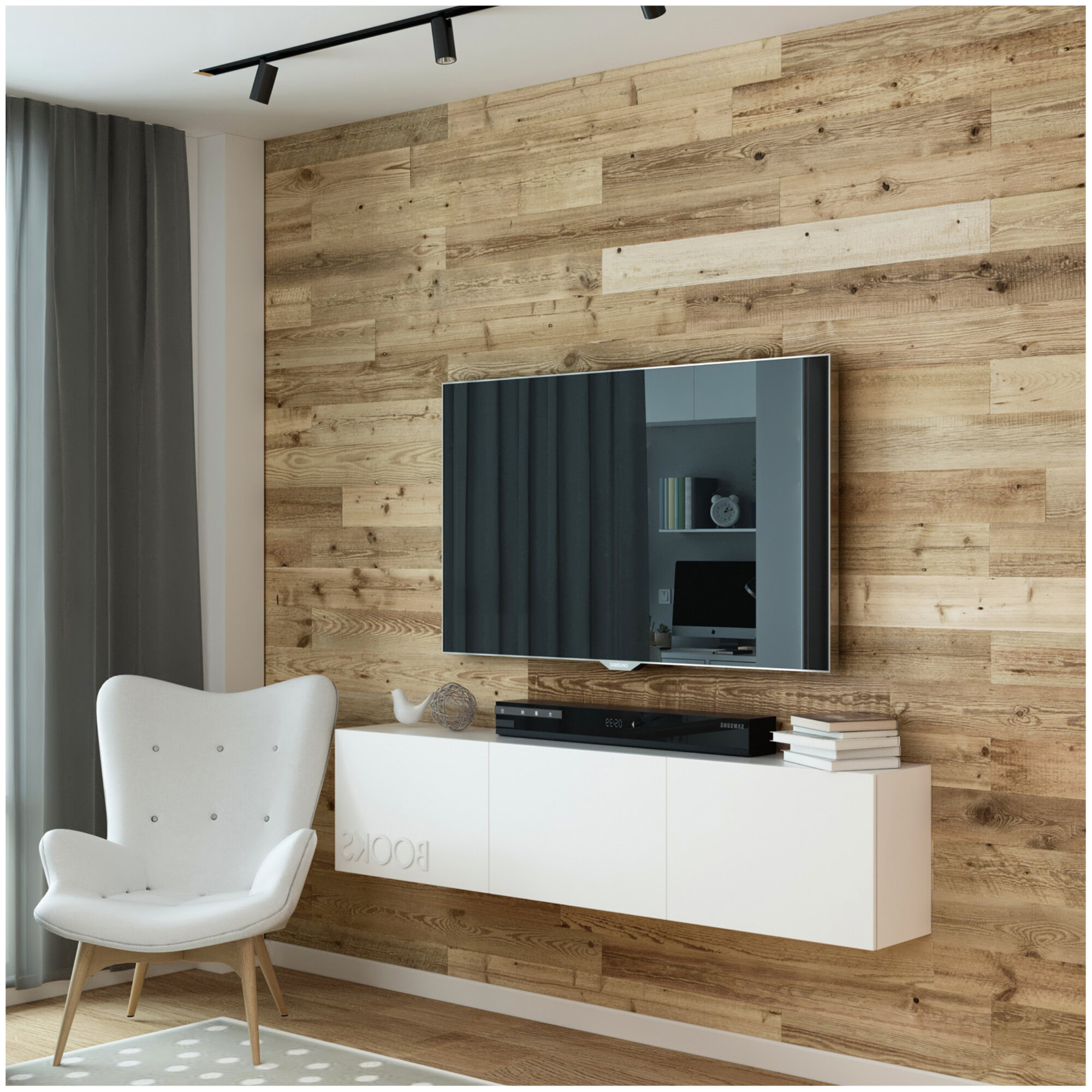 Панели деревянные 800*102 мм. Панели для отделки стен из амбарного дерева белого цвета 0.98 м2