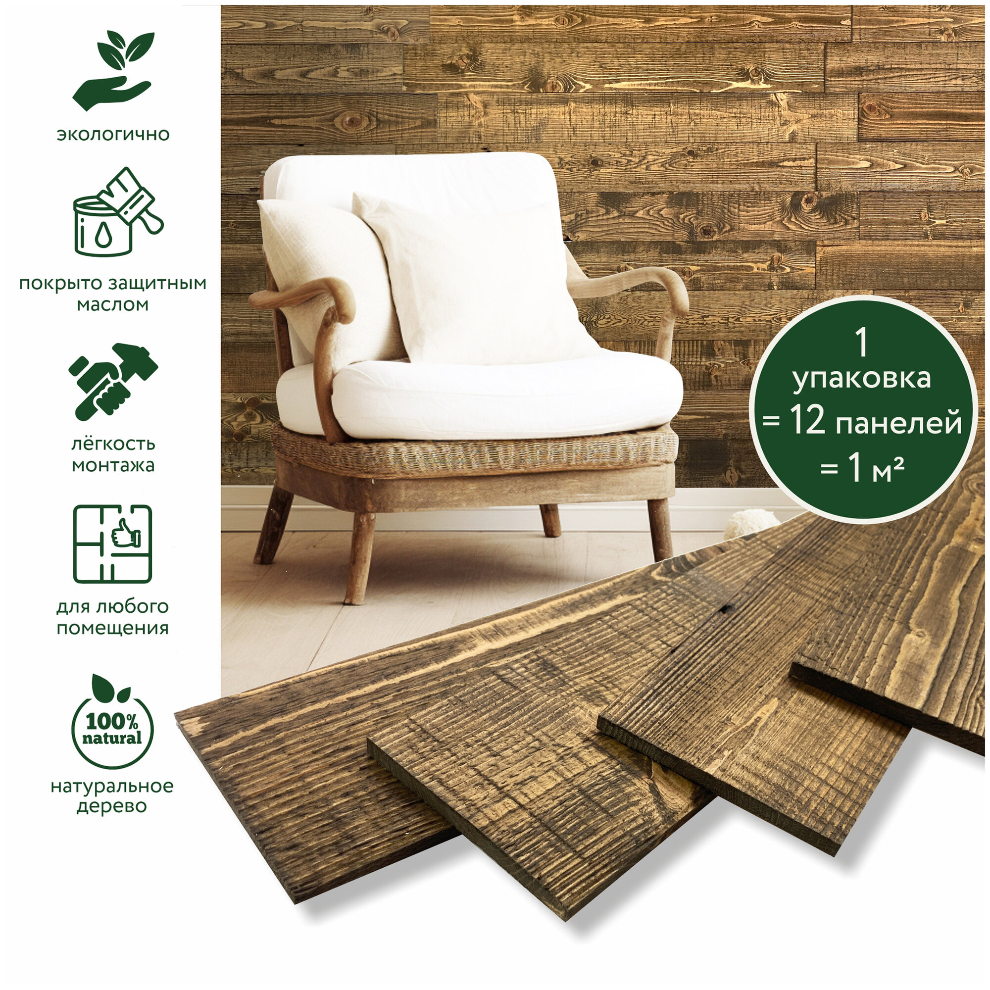 | Подробная комплектация | 12 стеновых панелей, инструкция по установке |