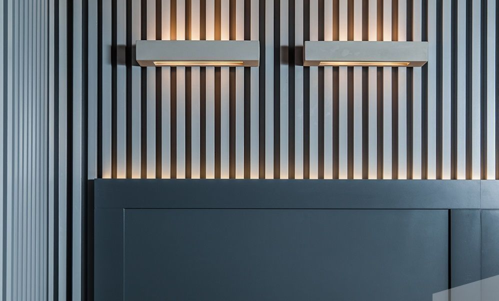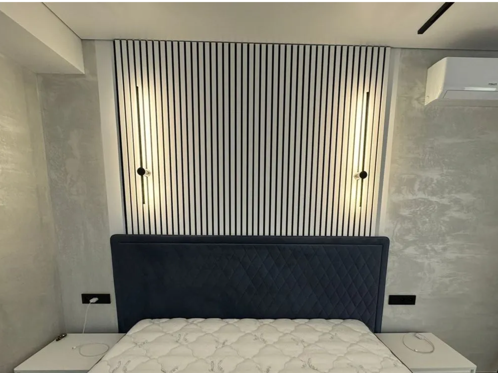 Акустическая реечная панель AKUPANEL - Декоративные рейки (Белый бархат) и серая акустическая панель Акупанель