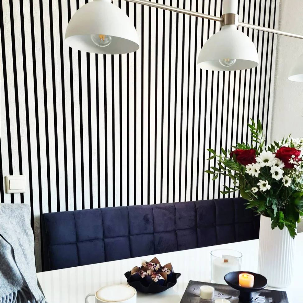 Акустическая реечная панель AKUPANEL - Декоративные рейки (Белый бархат) и чёрная акустическая панель Акупанель интересное: