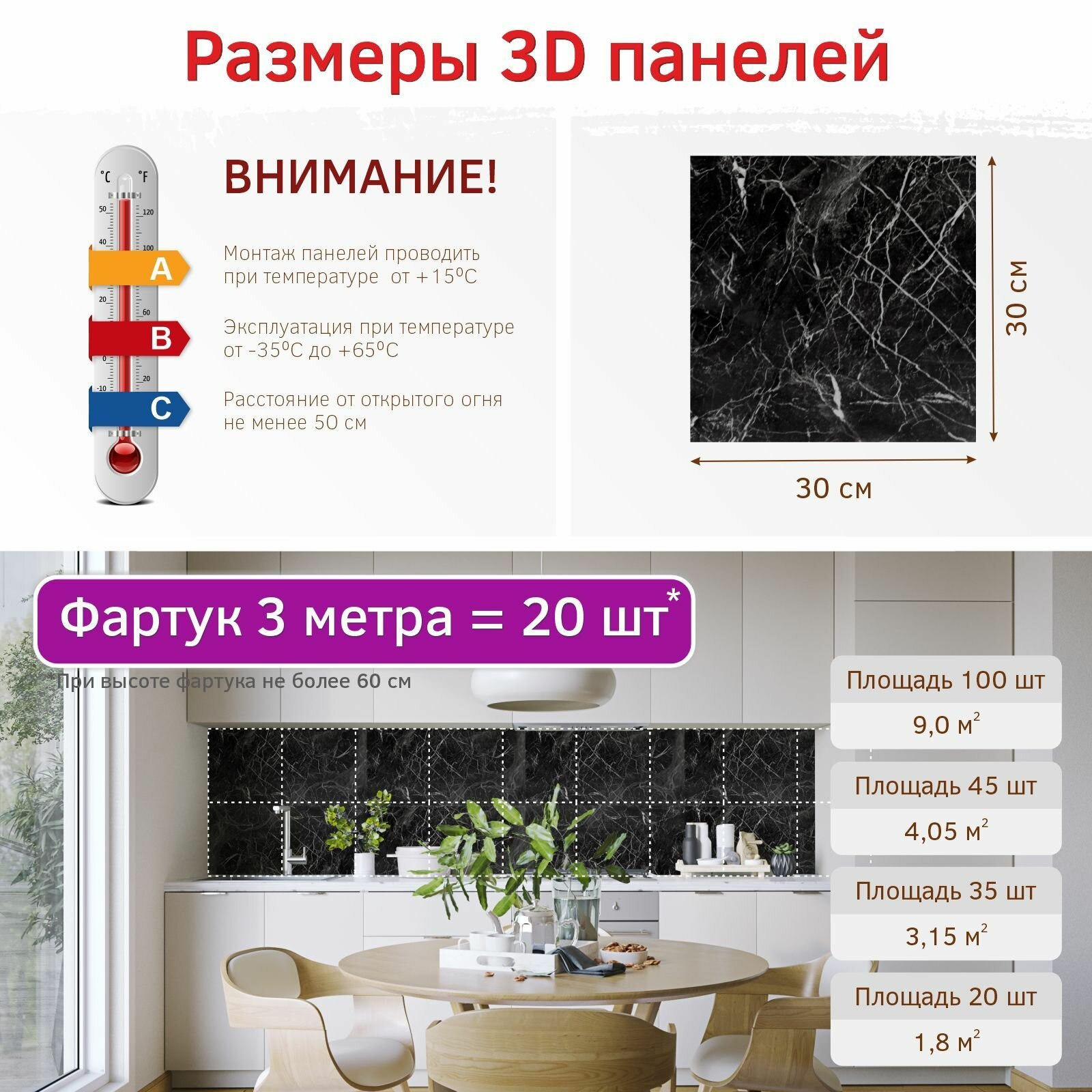 СохранитьВлагостойкие стеновые панели самоклеящиеся для стен и пола "Мрамор черный матовый" 30х30 см 20 шт. ссамоклеющаяся плитка декор вместо кухонного фартука интересное: