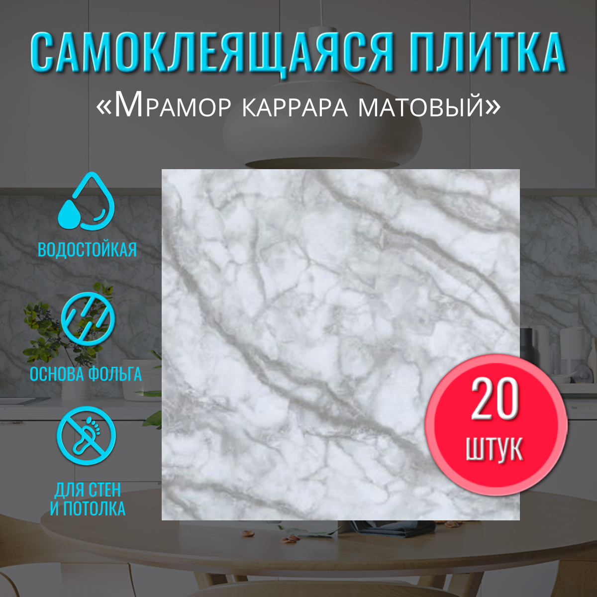 СохранитьПлитка самоклеющаяся на стену в ванну и на кухню "Мрамор Каррара матовый" 30х30 см 20 шт. самоклеющаяся панель декор на стену вместо кухонного фартука интересное: