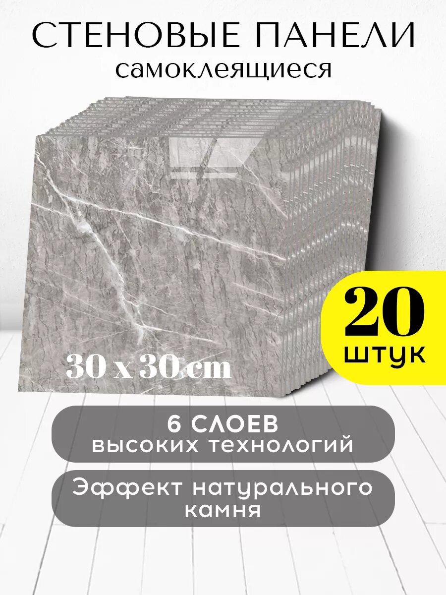Панели стеновые самоклеящиеся декоративные 30*30 см., 20 шт., серый, белый мрамор Conflate