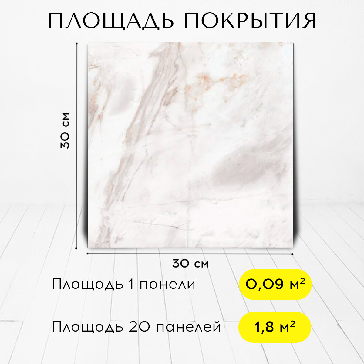 Conflate Панели стеновые самоклеящиеся декоративные 30*30 см., 20 шт., серый, белый мрамор