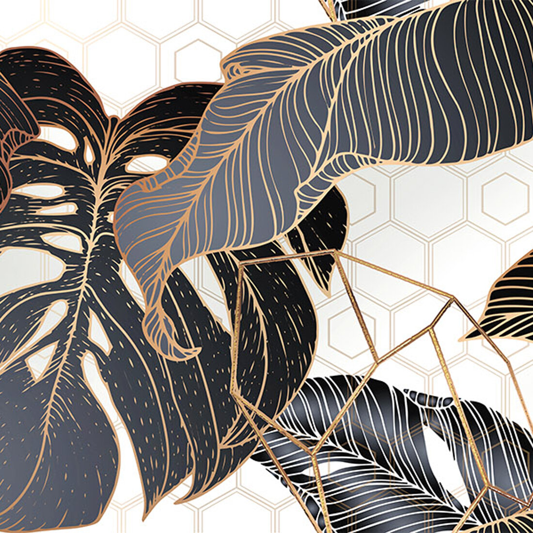 Фартук для кухни из АБС пластика "Листья в графике" 3000*600*1,5мм. Кухонный фартук ABS с фотопечатью.
