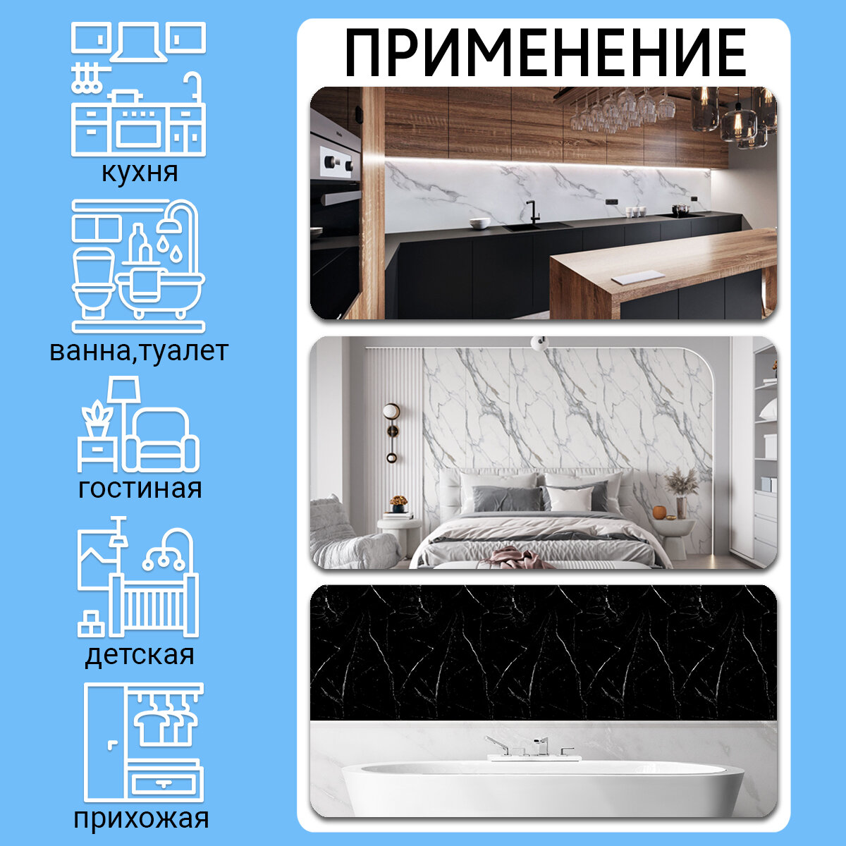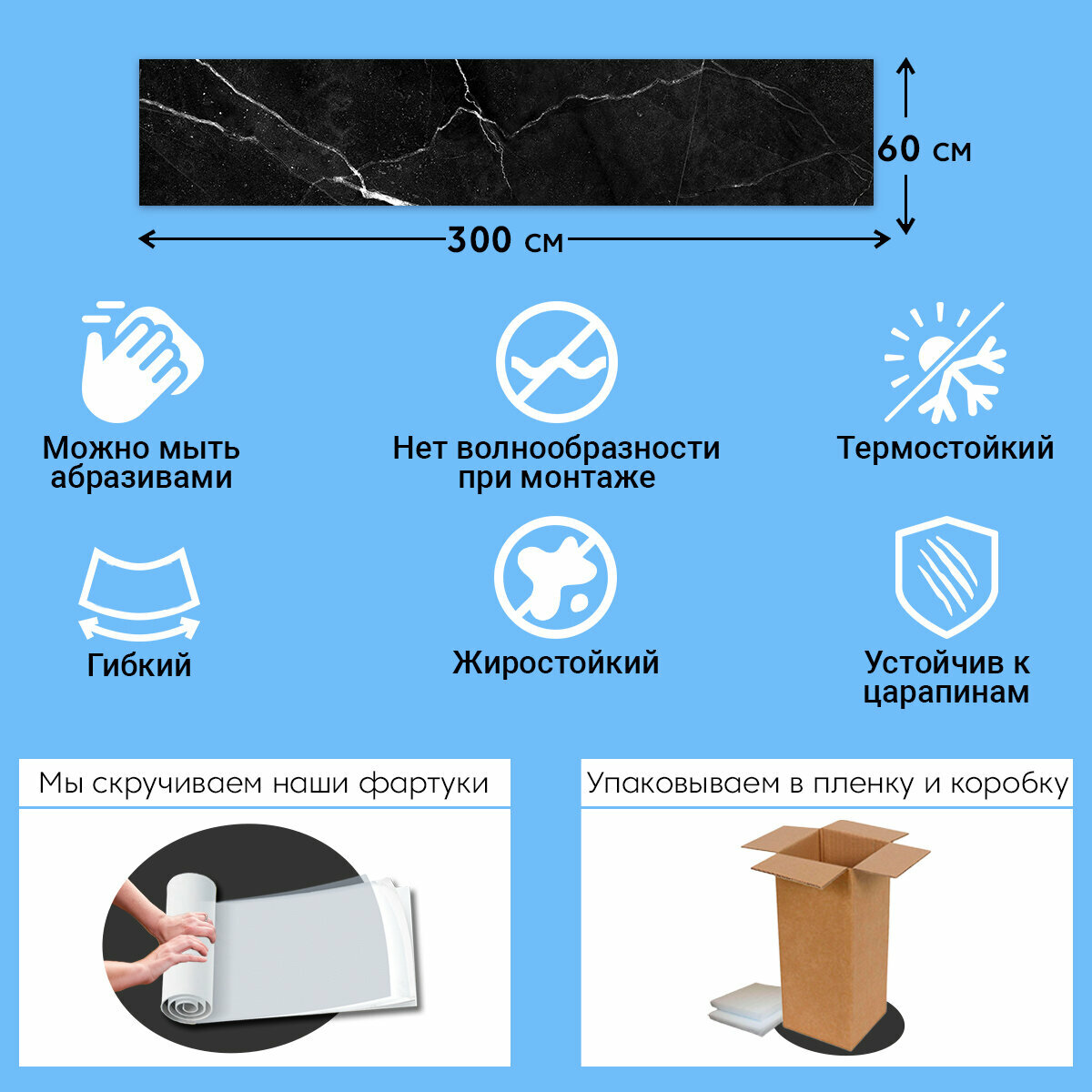 Фартук Кухонный на стену "Мрамор Черный" 3000*600*1,5 мм, ПВХ, термоперевод с жиростойким глянцевым покрытием