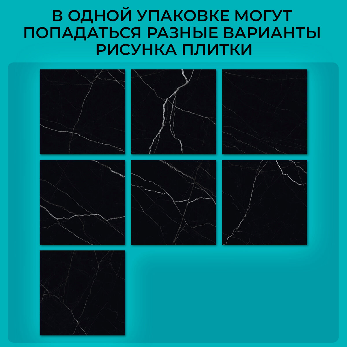 Стеновая панель ПВХ "Черный Мрамор", 59,5x59,5см, 4 шт.